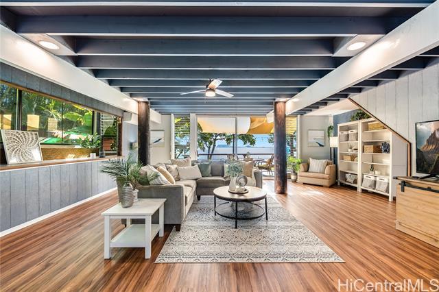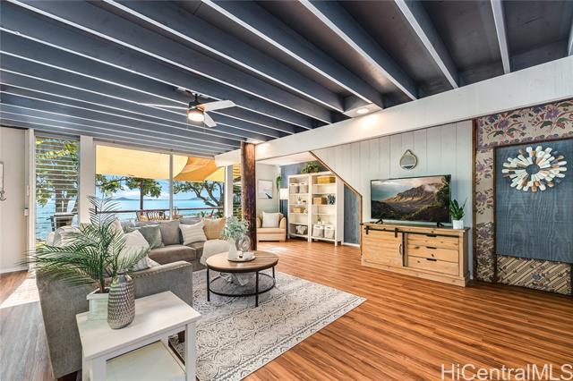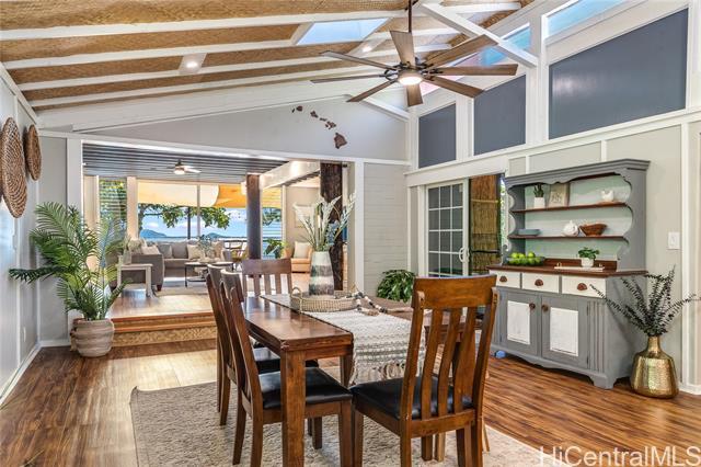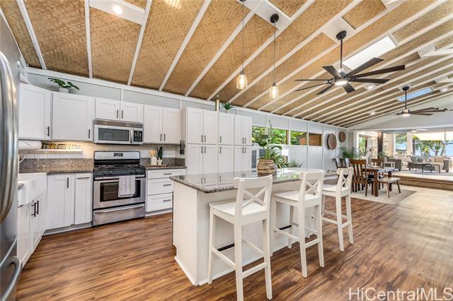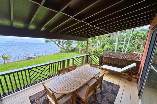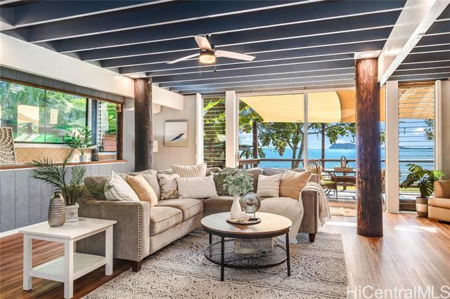 Experience serene waterfront living in Kahaluu! This spacious 3,088 sq. ft. property offers 6 bedrooms and 5 bathrooms, blending peaceful country charm with the convenience of Kaneohe just minutes away. The main living area features 3 bedrooms, 2 bathrooms, vaulted ceilings, and an open layout showcasing stunning views of Kaneohe Bay. Set on a lush 1/3-acre lot, you’ll find banana, and lime trees, garden spaces, beds of manicured tropical plants, and a covered cooking area with two gas grills. Enjoy breathtaking sunrises from the covered deck overlooking the bay, then fish, kayak (3 included), or boat straight from your backyard. Designed for comfort and sustainability, the home includes 46 Tesla solar panels, 3 Powerwall batteries, split A/C and window units throughout, a carport, and a massive garage/workshop fully equipped with tools and maintenance materials. The home is being sold furnished, and the seller is open to including his 20’ bay boat with the sale! Three attached studio spaces, each with a private entrance and wet bar, offer flexibility for guests, extended family, or creative use. *Tax records may differ— buyer/agent to conduct their own due diligence.*
