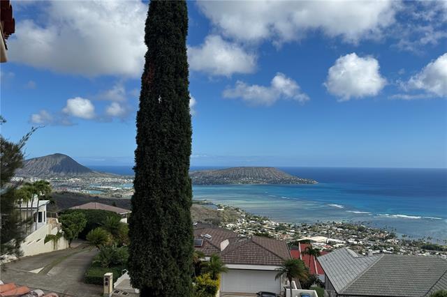 Panoramic view of Pacific Ocean from Koko head to Diamond Head. Mediterranean style house built by Bill Benjamin. 2 balconies to sit out and enjoy Ocean Views. 5 bedrooms and 5 baths. Master bedroom photo shown with ocean from balcony. Located on a Corner Lot at Hawaii Loa Ridge, 930 feet above the sea level. Landscapping includes 83 tall trees such as Hollywood Juniper and Italian Cypree trees. 16' tall living room,12' tall rooms on ground floor including kitchen, dinning room, and two bedrooms. Solid, not veneer, koa wood floors throughout. Recently repainted interior and exterior. Spilt AC. Estimated 4,400 sq ft living space. Large Courtyard with water Feature. Genune underground wine cellar and storage space. Two large walk in closets. Over 600 sq ft of extra storage space. Main Kitchen contains Sub Zero fridge and Viking gas stove. Jacuzzi. Master has a wet Bar. New water Heater Wall relief sculptures imported from Italy together with impressionist painting.