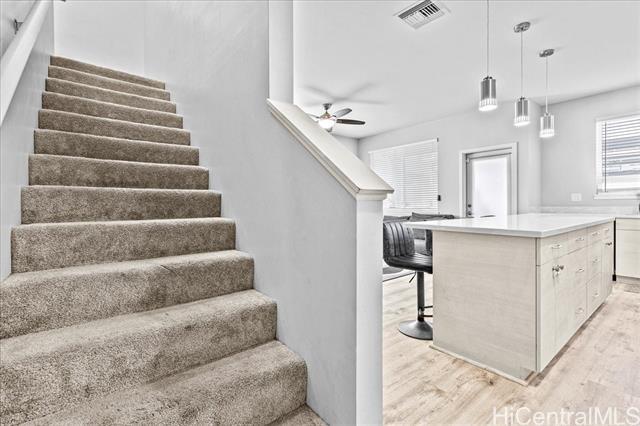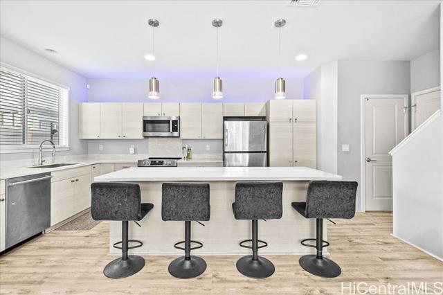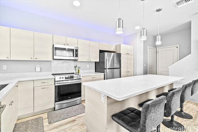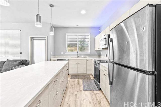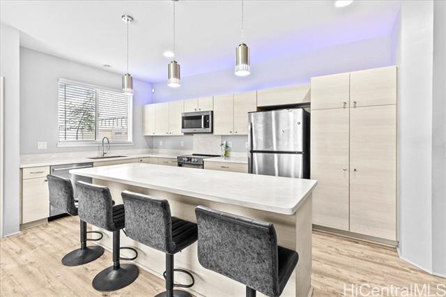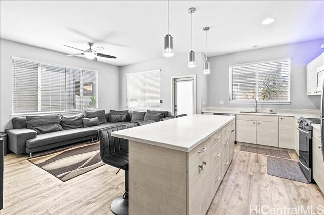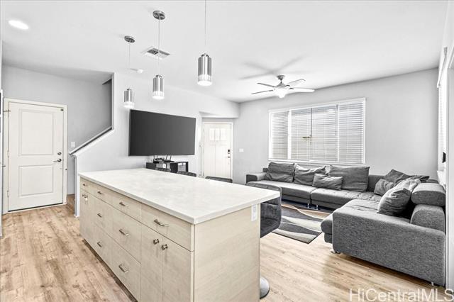 Welcome to your slice of paradise in the Seabridge community at 91-1159 Kamakana St, Unit 310. This beautifully designed two-story home offers a seamless blend of modern finishes and comfortable island living. Featuring 3 bedrooms and 2.5 bathrooms, the interior feels open and airy with 9-foot ceilings and a bright flow between the living, dining, and kitchen areas. Outdoors, you’ll enjoy a covered lanai and fully fenced yard with synthetic turf, perfect for relaxing or hosting gatherings with minimal upkeep. The home also includes a 2-car garage with nearby guest parking for convenience. Seabridge is conveniently located near White Plains Beach, Laulani Village Shopping Center, Ka Makana Ali‘i, Costco, and Kapolei Commons, offering easy access to shopping, dining, and parks.