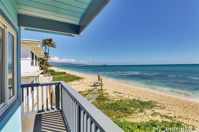 Experience the best of island living in this beautifully updated beachfront home with stunning Diamond Head and ocean views. This charming two-story, 2-bedroom, 2-bath single-family residence offers a flexible layout featuring 1 bedroom, 1 bathroom, a full kitchen, and a comfortable living area on each level—ideal for multi-generational living, guests, or rental potential. Originally remodeled in 2018, the home has been tastefully maintained, blending modern comfort with the relaxed spirit of coastal Hawai‘i. Enjoy morning coffee or sunset dinners on your private oceanfront patio, just steps from direct beach access. The spacious 4,043 sq. ft. lot provides room to relax, entertain, and enjoy the island breeze. Conveniently located near shopping centers, schools, and parks, this home offers both tranquility and accessibility. Perfect for those seeking a balance between comfort, functionality, and the timeless beauty of beachfront living.