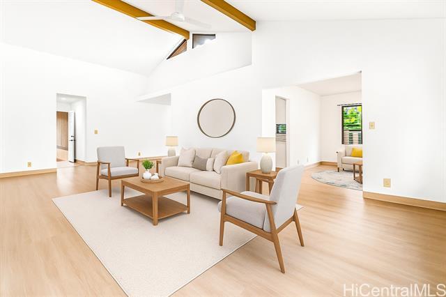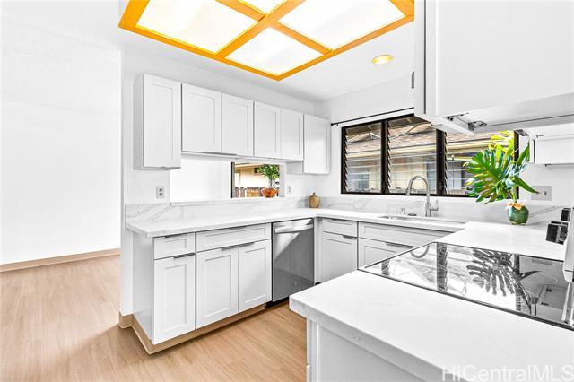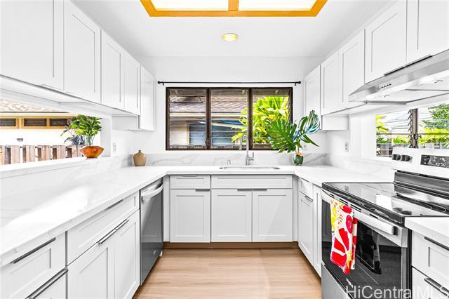 Beautiful, single-level family home in highly desirable Mililani! 3-bedrooms, 2-baths and 2-car garage! Situated in a quiet, established cul-de-sac with consistent ownership since 1992, this home offers a serene living environment. The spacious floor plan features vaulted ceilings, an open atmosphere and excellent cross-ventilation! New interior paint throughout the home and garage. Completely remodeled kitchen and bathrooms with brand-new cabinets, countertops, fixtures and finishes. New flooring in living room, kitchen, bathrooms and hallway. The property is fully fenced for privacy, with an easy, low-maintenance yard. Conveniently near Mililani Town shopping centers, great dining, entertainment, supermarkets, retail stores, recreation facilities and parks. Minutes from Kipapa Elementary, Mililani Waena Elementary, Mililani High School. and on/off freeway exits. Move-in ready! Come see and make this your new home!