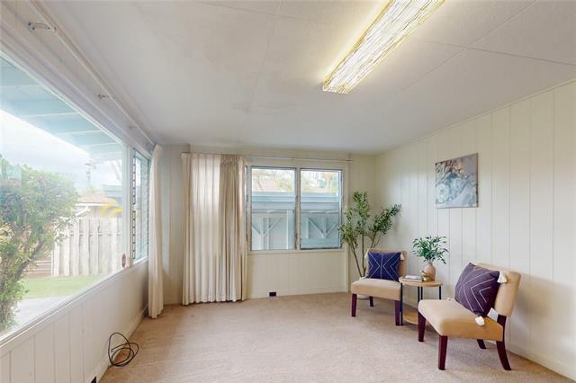 Charming Kailua Home! Welcome to this delightful single-level 3-bedroom, 1.5-bath home ideally located in Coconut Grove neighborhood. Enjoy the best of Island living just minutes from world-famous Kailua Beach and Lanikai, as well as the shops, cafes, and restaurants that make Kailua Town so special. This inviting home features fresh exterior paint, a brand-new roof and a completed property survey, offering peace of mind and great curb appeal. The open single-level layout provides comfort and convenience. Bring your remodeling and decorating ideas to spruce up the interior to your own style. Spacious yard great for entertaining or just relaxing outdoors. Embrace the vibrant Kailua lifestyle, bike to the beach for sunrise, grab groceries at Whole Foods, or dine at your favorite local spots, all within minutes of home. Whether you're a first-time buyer, investor, or simply looking for your slice of paradise, 550 Olomana Street is the perfect place to call home. Note: One or more photos may have been enhanced.