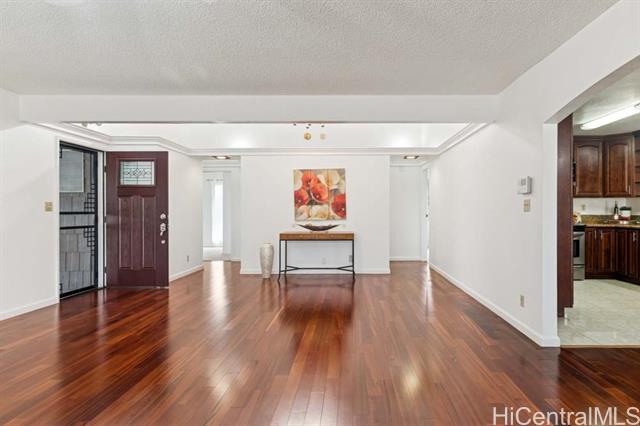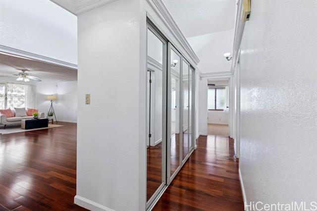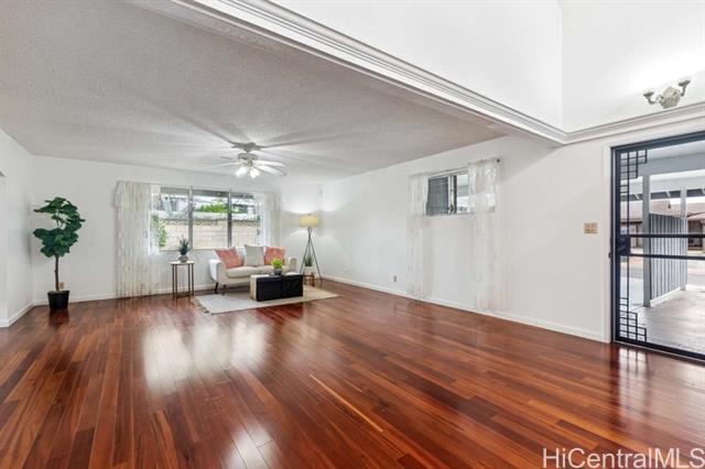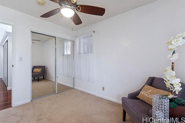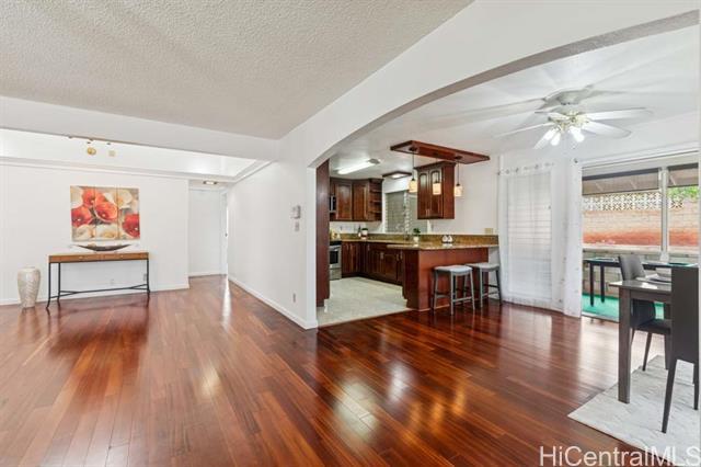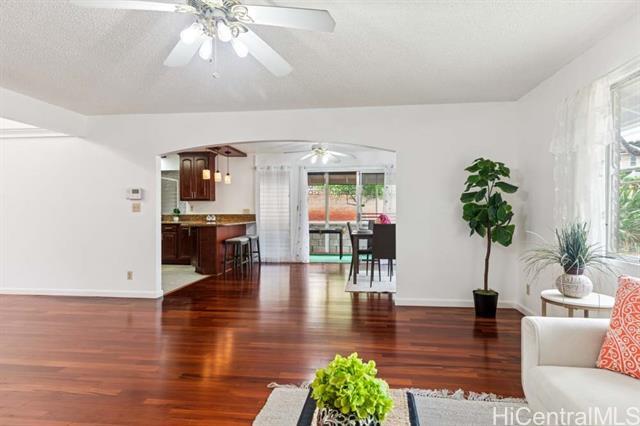 Feel right at home in this Mililani gem! Just a couple blocks away from the Mililani Marketplace and local businesses bringing convenience to this single-level residence of 3-bedroom, 2-bath on a spacious corner lot. This home welcomes you to vaulted ceiling and engineered hardwood floors, giving it an open feel. The kitchen offers an abundance of cabinet space and features stainless steel appliances with beautiful granite countertops in both the kitchen and bathrooms. The roomy primary bedroom is your own peaceful retreat and sanctury. Fresh interior paint, and brand-new carpet installed. Plus, PV panels help keep those electric bills low — a great bonus for island living. The floor plan is set up for weekend gatherings, pau hana get-togethers, or simply enjoying time with ‘ohana. Add your own personal touch to the yard and make this special home truly yours! Come visit 1st open house Sunday 11/16 2pm-5pm.
