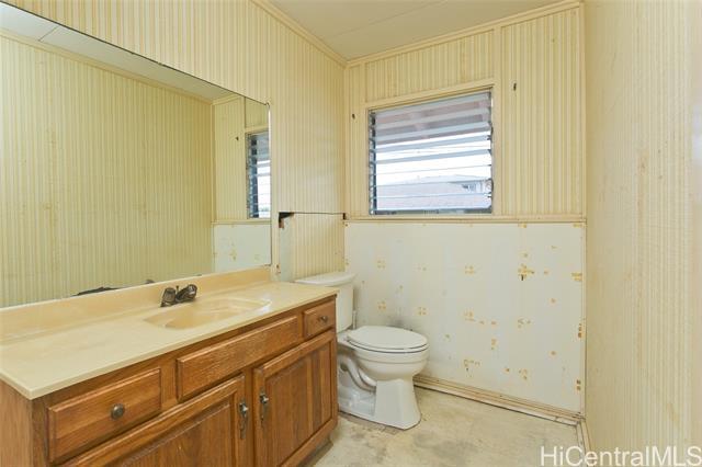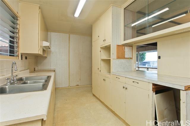 Admired for its expansive design and inviting curb appeal, this 4-bedroom, 2.5-bath single-level home is being offered for sale by its original owner. Perched on an elevated, level lot professionally terraced with moss rock walls, the property offers both privacy and island character with Asian-inspired touches. With 1,900+ sq. ft. of living space, the home features a separate laundry room, peaceful private lanai and enclosed 2-car garage. Exterior updates include the complete replacement of aged cast-iron pipes with a new 4" PVC sewer line connected at the road, plus a large driveway for additional parking. The interior is full of potential, awaiting your vision and creative touches to make it truly your own. Conveniently located in a desirable Pearl City neighborhood, just minutes from Pearl Highlands Center, Pearlridge Mall and easy freeway access. A must-see property!