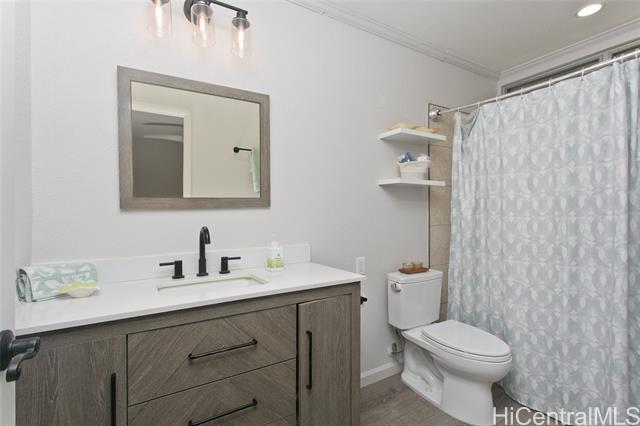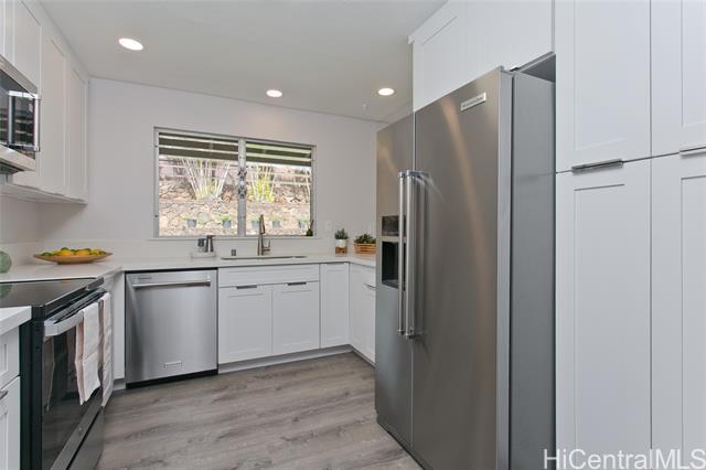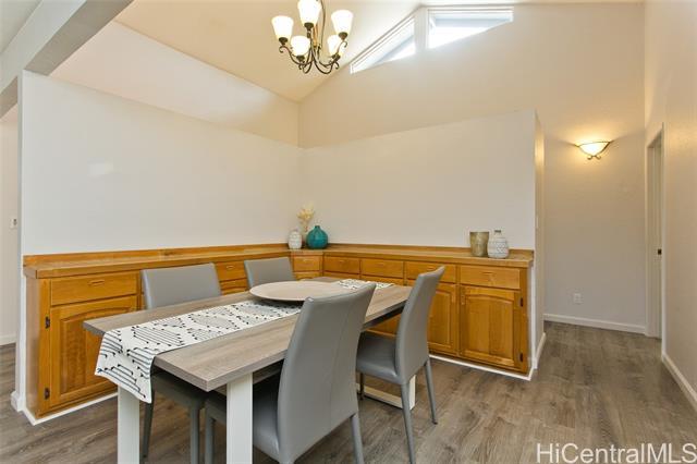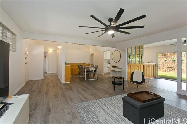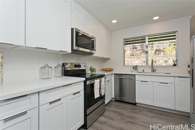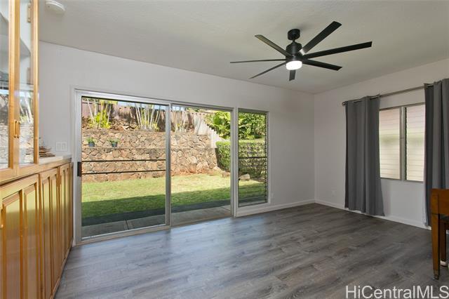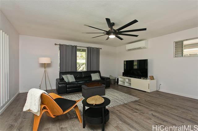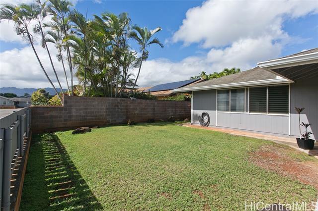 Desirable Mililani. Single level with open floor plan. 3 bedrooms, 2 baths in excellent condition. Clean and ready to move in! Upgrades include: renovated kitchen and bathrooms, large split ac in living room, newer appliances, vinyl plank flooring throughout, ceiling fans. Landscaped, front and back. Terraced back yard tastefully done. You can make this back yard your own. Irrigation does not work and sold in as is. Sellers water yard manually when needed. Carport can fit 2 cars and room to also park on the driveway. Storage closet in carport. Home is located in the beginning of a Culdesac. Mililani Town Association fee $165 quarterly. Multiple Recreational Centers for use. First Brokers Open Wednesday 11/19 10:30-12:00, First Open House Sunday 11/23 2-5. Please use Showing Time to schedule all showings. All offers should include pre-approval letter/proof of funds, AS IS Addendum.