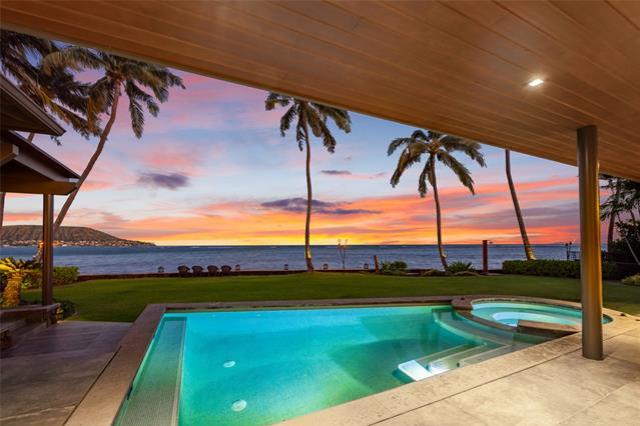A tropical modern masterpiece embodying the essence of seamless indoor–outdoor living, showcasing over 120 linear feet of ocean frontage and breathtaking 180-degree views from Koko Head to Diamond Head. Blending luxury with an extraordinary island setting. The chef’s kitchen featuring top-tier appliances including a Wolf gas range, Miele hood, Sub-Zero Pro 48" fridge, and Bosch dishwasher—complemented by a butler’s pantry with Fisher & Paykel fridge, dishwasher, and a powder room adorned with Fornasetti Italian wallpaper. Exquisite craftsmanship defines every detail, from the intricate ceiling designs to the custom Sapele Mahogany doors and window frames. Elegant lighting by Fortuny and Fontana Arte adds warmth and sophistication, while smart-home technology, air conditioning, pocketing doors, and Florim porcelain tile flooring ensure comfort and connection throughout the kitchen, living spaces, and lanai. Outdoors, a tiled pool, spa, koi pond, and cascading waterfall create a tranquil retreat, while a private pier with steps leading directly into the ocean invites you to swim, paddle, snorkel, fish, or surf, all from your own backyard. This isn't just a home, it's a lifestyle!