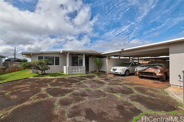 Welcome to Momilani — Pearl City’s Highly Desirable Neighborhood! This charming single-level home offers 3 bedrooms and 1.5 baths, perfectly situated on a spacious and level 6,000 sq. ft. (approx.) lot. A rare opportunity in a sought-after community where homes seldom become available! Featuring an original interior, this residence provides the ideal canvas for a new owner to add their personal touches and transform it into their dream home. The open single-story layout brings ease and convenience to everyday living, while the generous yard offers excellent potential for outdoor enjoyment, gardening, or future expansion. A detached 2-car covered carport plus a gated driveway allow parking for multiple vehicles, with additional street parking available — a huge bonus in this desirable neighborhood. Conveniently located near schools, shopping, dining, and freeway access, this home provides both comfort and opportunity in a prime Pearl City location. Priced to sell and sure to attract attention... this one won’t last long! A must-see to fully appreciate the possibilities.