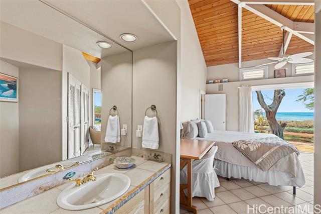 Enjoy spectacular sunsets and ocean views from every room in this beautiful custom home on 5 acres of level oceanfront property, fenced and gated for maximum privacy. Stunning Dixie Maru Bay with sandy beach just steps away. 2 primary suites with their own full baths. 3rd bedroom with full bath and kitchenette could be used as studio guest quarters.4th bathroom for guests. Open floor plan.Woodframe sliding pocket doors allow for unobstructed views of the ocean from 2 sides. Enjoy your morning coffee on the spacious deck, also perfect for entertaining. Large 2 car garage could also be used as a workshop. Refreshing pool, cabana and shower provide complete privacy.