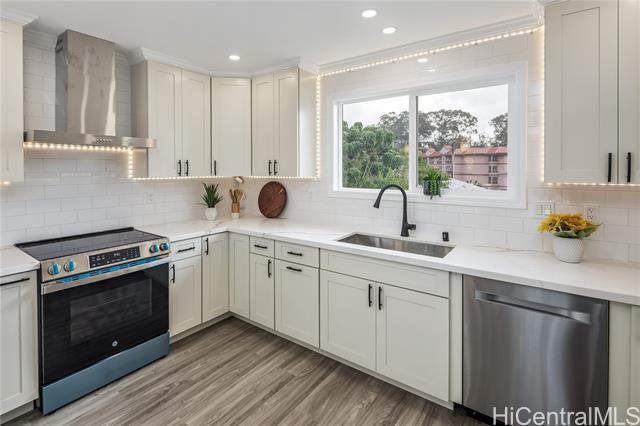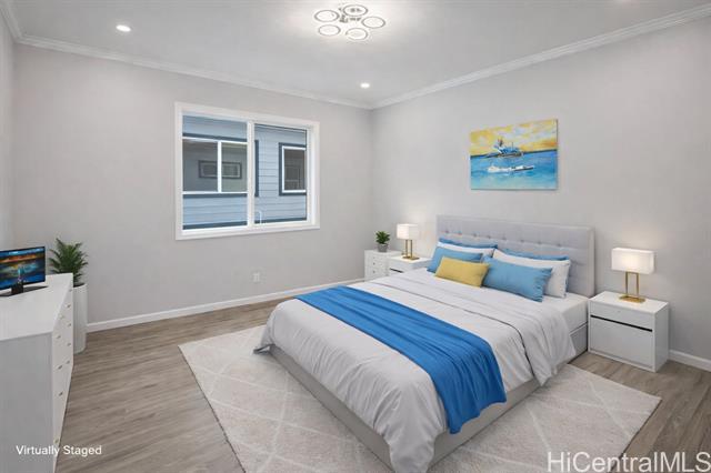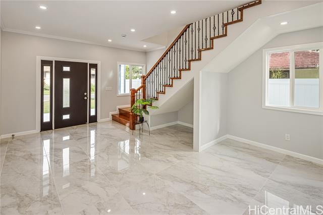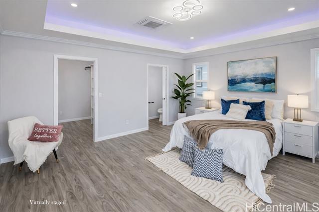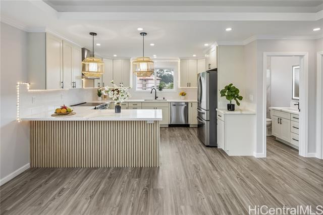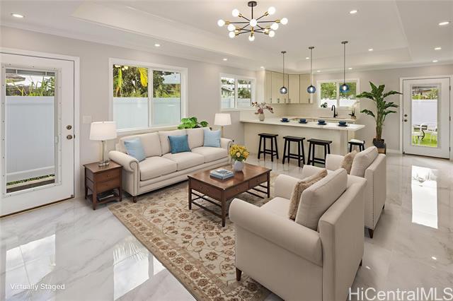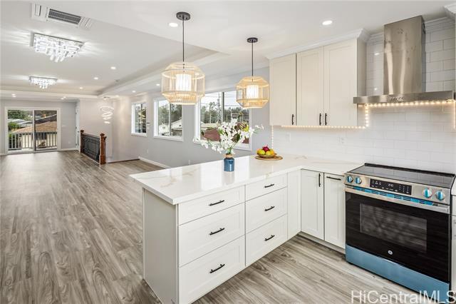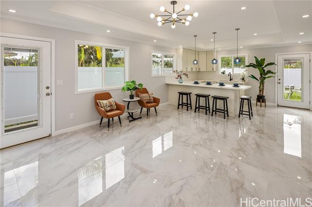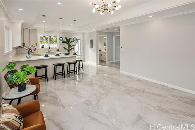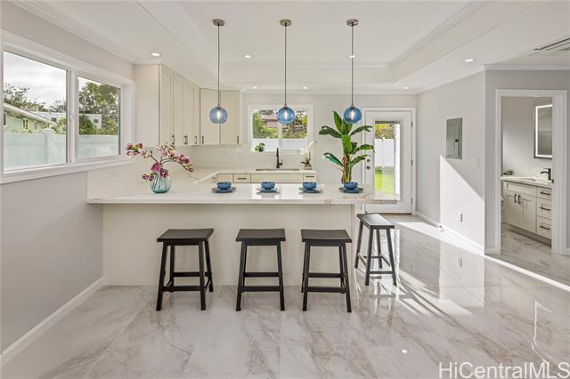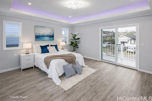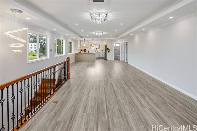 Discover this stunning brand-new 2-story single-family home in Wahlawa, expertly crafted with both luxury and functionality In mind. This spacious residence offers 5 bedrooms, 4 full bathrooms, and a 2-car garage, providing ample room for multi-generational living or flexible lifestyle needs. The first floor features 2 bedrooms, 2 full bathrooms, and a beautifully appointed spacious wetbar, making It Ideal for extended family or guests. Elegant tile flooring creates a sleek and modern feel throughout the level. Upstairs, the second floor features 3 bedrooms, 2 bathrooms, and a large open-concept kitchen with premium finishes-perfect for cooking, entertaining, and everyday living. vinyl plank flooring enhances the contemporary appeal. Luxury muti-split A/C units throughout keep the home cool year-round. The upstairs Ilving room and primary bedroom are highlighted by a fascinating suspended celling with custom lighting, adding a sophisticated architectural touch. Enjoy the peace and comfort of this Wahlawa neighborhood while being Just minutes from schools, dining, shops, and the scenic Wahlawa Freshwater State Recreation Area, Schofleld Barracks and Wheeler Army Airfield!