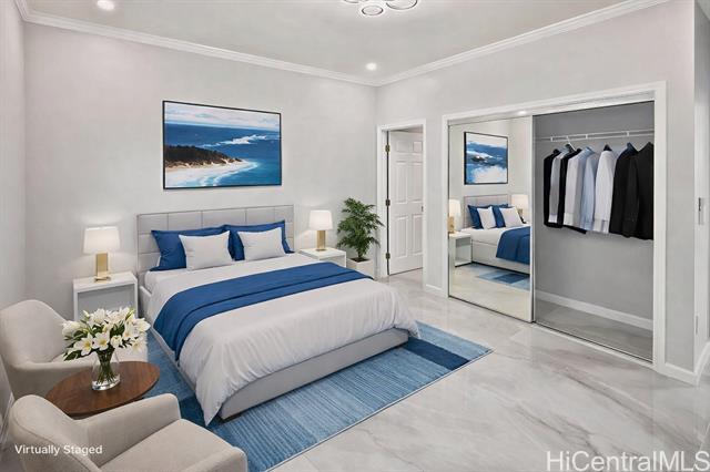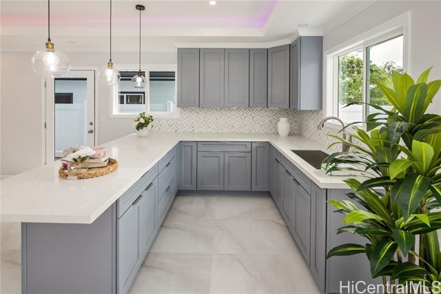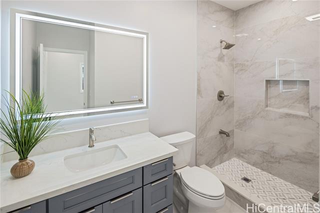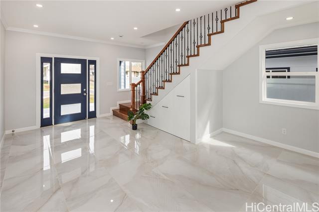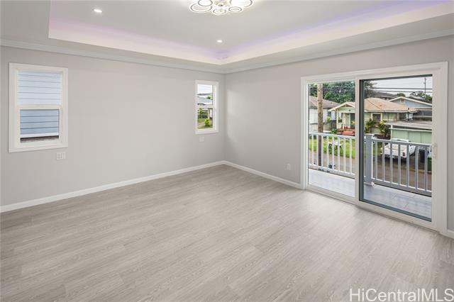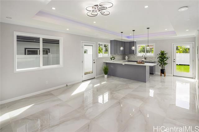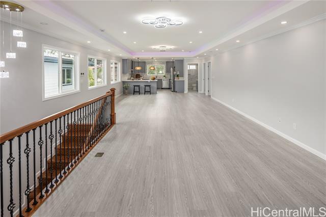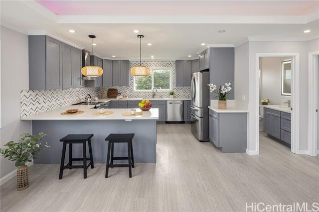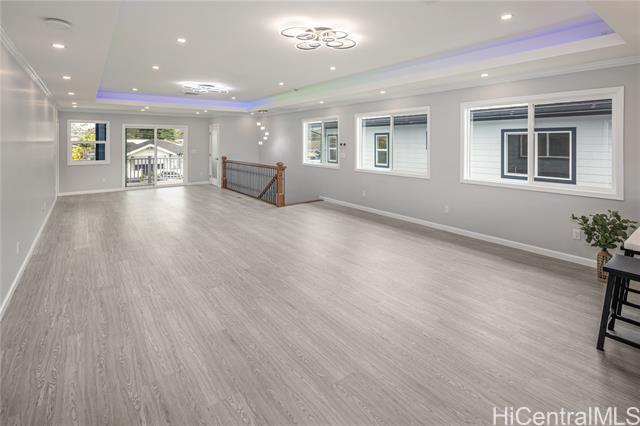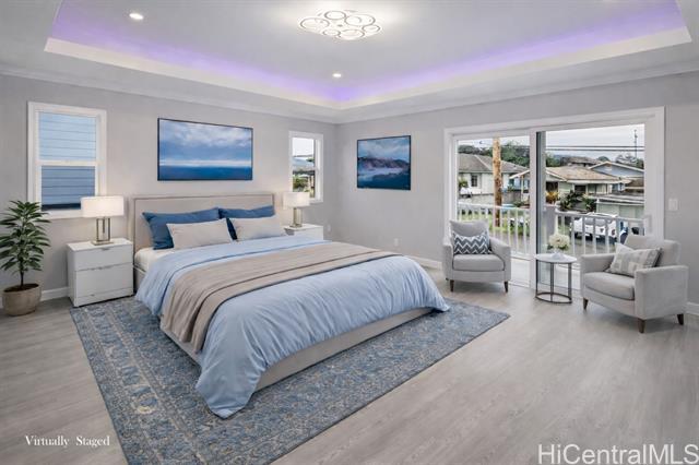 Stop searching! Discover this gorgeous, brand-new 2-story home in Wahlawa, just minutes from Schofield Barracks and Wheeler Army Airfield! This beautifully crafted residence offers 5 bedrooms, 4 full baths, and a 2-car garage, showcasing excellent finishes and flexible living options. Enjoy year-round comfort with luxury Mitsubishi multi-split A/C throughout The upper level features 3 bedrooms, 2 bathrooms, and an elegantly designed open-concept kitchen with modern cabinetry featuring soft-close drawers & doors, quartz countertops, brand-new appliances & vinyl plank flooring throughout the second floor. Incredible smart strip light that syncs with music rhythms, transforming the space into an energetic, mesmerizing, and magical environment. The downstairs offers 2-beds, 2 full baths, and a spacious wetbar, ideal for entertaining and multigenerational living. Large tile throughout the first floor. This turn-key property delivers exceptional convenience near Wahtawa Shopping Center, dining, schools, parks, and military bases. Experience the comfort of new construction combined with thoughtful design in a desirable central Wahlawa location. Don't miss this magnificent opportunity!
