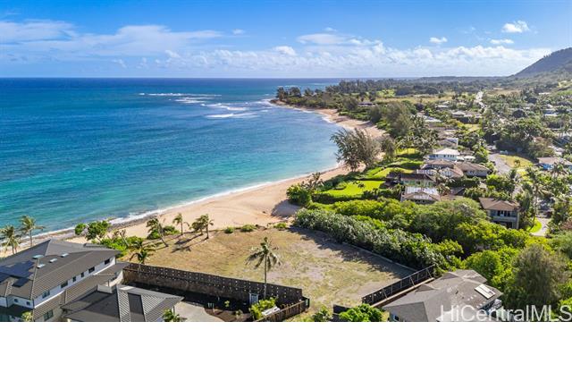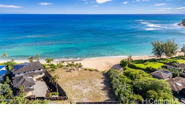 A once in a generation opportunity to claim one of the North Shore’s most iconic beachfront parcels, over 50,000 square feet of oceanfront land with approx. 150 feet of sandy frontage along Oahu’s Kuanala Beach. Set within a private gated enclave this corner offering captures sweeping ocean vistas, sunsets, & a rare position along one of Hawaii’s accreting shorelines where the beach continues to widen. Enjoy year round swimming in calm crystal clear water, an uncommon feature on the North Shore, with effortless access to surf breaks including Velzyland & Freddieland. A coastal path leads to Shark’s Cove & Sunset Beach, with Turtle Bay Resort & The Ritz Carlton minutes away. This combined parcel includes fully approved permits & plans for a 4,565 square foot luxury residence with 4 bedrooms, media room, family room, gym, 4 full baths, 1 half bath, pool & a three car garage with five stalls plus an approved garage structure allowing up to 1,350 square feet of additional living space above. Plans also include a 2,710 square foot residence with a two car garage, 3 bedrooms, 2 full baths & a pool. This is an opportunity to purchase adjoining lots. Lots may also be purchased separately.