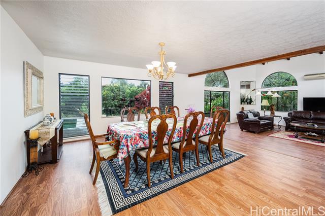 Enjoy the Serenity! Ahuimanu Hills Rarely Available Home located at the base of the Majestic Koolau Mountains. Custom Built 7 Bedroom Home with 5 Full Bathrooms, includes attached 2-bedroom, 1 bath suite with wet bar. Also features a swimming pool and deck, comfy fireplace, two living areas, nice spacious kitchen, on a lush, landscaped lot with lots of fruit trees and generous parking. Being Sold "As-Is".