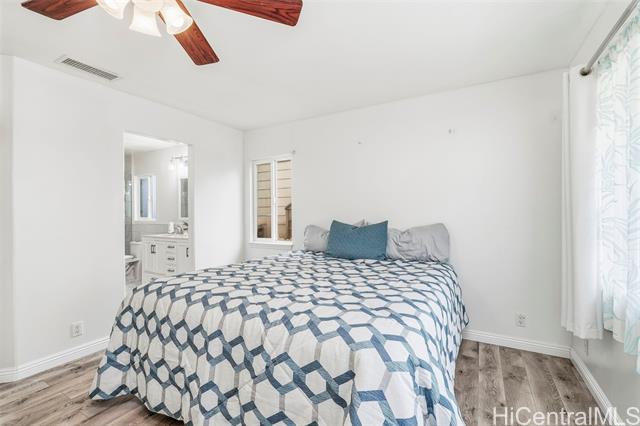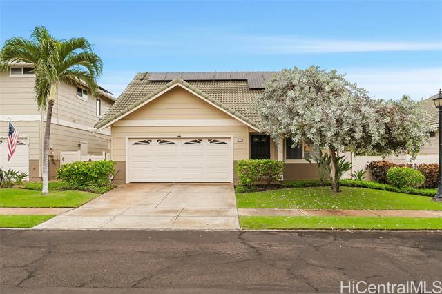 PROPERTY OFFERED THROUGH USAHOMEBIDS.COM Beautifully remodeled 3 bed, 2.5 bath home in the desirable gated Huelani subdivision. The primary suite is on the main level w/ a remodeled ensuite featuring dual sinks, a tile shower, & a walk-in closet. The kitchen was fully renovated in 2022 w/ $55K in upgrades, including granite counters, stainless appliances, cabinet under lighting, a large walk-in pantry, & peninsula seating. Laminate flooring runs throughout. Upstairs are two spacious bedrooms, one with a walk-in closet, plus an updated full bath. Enjoy a landscaped backyard w/ raised garden beds. Additional features include 33 owned solar panels, gutters, a 2-car garage w/ laundry & extra storage, & a transferable home warranty. Move-in ready & beautifully maintained. The community features a gorgeous swimming pool, a well-appointed recreation area, & an indoor gym. Pride of ownership is evident throughout. SHOWINGS AT OPEN HOUSE ONLY: 12/20 12-4pm, 12/21 2pm-6pm, 12/22 10-1pm, 12/27 12-4pm, 12/28 10-2pm. Bidding set to close Sunday 12/28 @ 6pm HST. Visit usahomebid.com/property?id=601 to place your bid. Buyer & their agent to perform due diligence.