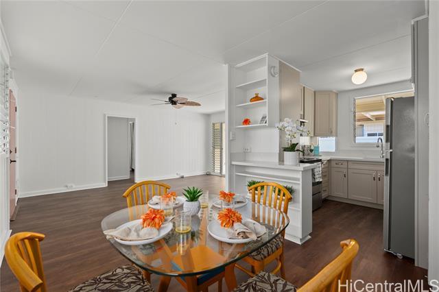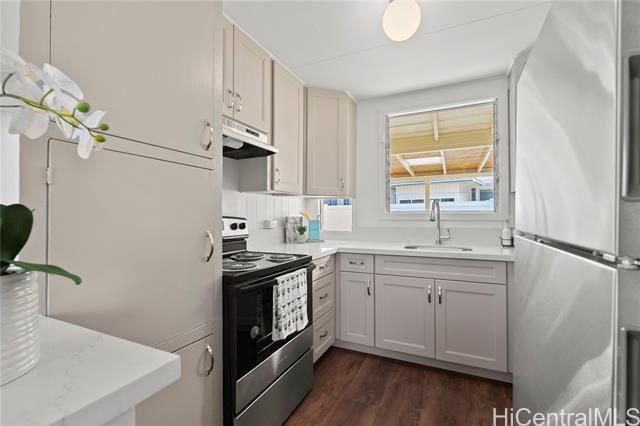 QUAINT, COZY & CHARMING 3BD/1BA KAILUA home is freshly remodeled w/stylish updates! Enjoy NEW floors, NEW refrig, NEW range, NEW dishwasher, NEW microwave, NEW faucets, FRESH paint, SPACIOUS covered lanai, NEWER roof & dreamy MOUNTAIN views. This flat, fully FENCED yard is perfect for pets, gardening, or outdoor fun. Rinse off in your private outdoor shower after a short walk from the beach or nearby park. Easy access to H3, Pali/Likelike Hwy, Marine Corp Base, Aikahi Park Shopping Center & Kailua town! This ISLAND GEM w/lots of indoor/outdoor STORAGE is full of ALOHA & move-in ready! 3 photos have been virtually staged(enhanced).
