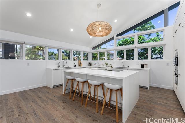 Discover the epitome of island living in this exquisitely remodeled and impeccably maintained 5 bedrooms/4 bath executive style residence in the highly sought-after Portlock neighborhood. Nestled on a nearly 13,000 sq. ft. LEVEL lot, this home boasts over 4,000 sq. ft. of elegantly detailed living space that seamlessly blends style and functionality. The newly renovated interior features a spacious open floor plan, updated baths and luxury vinyl plank flooring. At the heart of the home is a chef’s kitchen, complete with a large island and Miele appliances. The home is thoughtfully designed to be able to separate 1 bedroom/1 bath/living room with a wet bar and private entry as your ideal guest quarters. The generous lanai overlooks the expansive landscaped and enclosed backyard, perfect for indoor/outdoor entertainment. Plus, it’s just one lot away from a sandy beach, where you can indulge in sun-soaked days. Conveniently located near Koko Marina Shopping Center, Costco, and Hawaii Kai Shopping Center with a variety of shopping and restaurants. This exceptional residence is a must see!