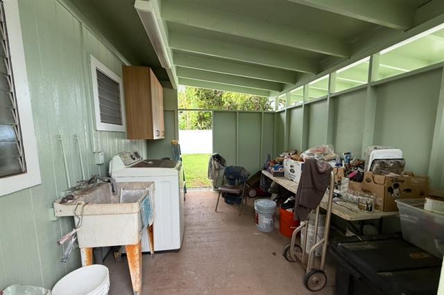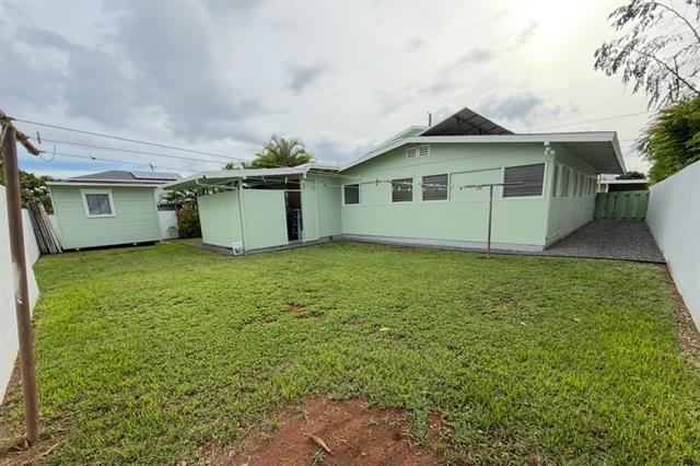 Explore multi-generational or rental op w/ this newly renovated property in Ewa Beach! This exquisite 2-story home features 5 bedrooms, a den and 3 modern bathrooms, complemented by an enclosed patio with wet bar that enhances the living space. Fully renovated in 2025, it embodies modern plantation luxury without the burden of HOA fees. The property offers three private entries for versatile living arrangements. 1) The main house includes 3 bedrooms and 1.5 baths, along w/ a full kitchen, dining, and formal living room—ideal for the relaxed island lifestyle. 2) The second floor has two additional bedrooms and a bath, plus a cozy living room with hot plate potential, perfect for guests or rental. The sq ft in tax records show two extra bedrooms and bath but not reflected and seller is working to correct this. 286 sq ft open lanai, enclosed with a wet bar. Additional features include a den, a bath, a roofed open lanai, and a storage shed, which are not reflected in tax records. Don’t miss this chance to own a beautifully renovated home in Ewa Beach!