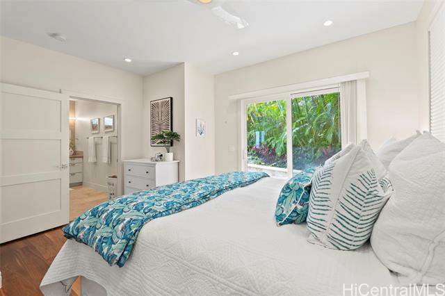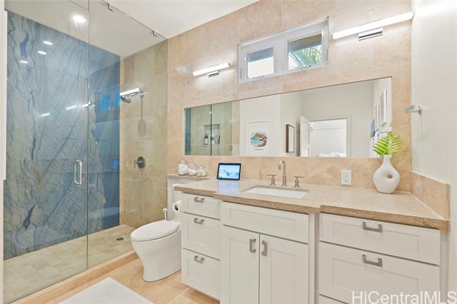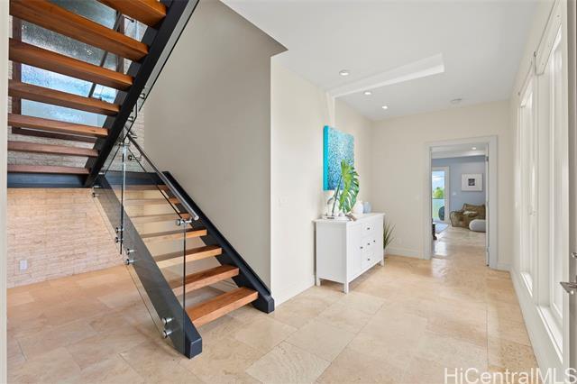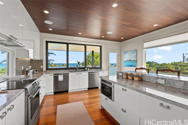 This stunning home is ready for you to live the ultimate Hawaii paradise lifestyle in the gorgeous community of Lanikai. Do not miss the opportunity to reside in this impeccable custom-built 4 bedroom 3.5 bathroom beauty! Built brand new and finished in 2018, the upper level showcases a chef’s kitchen and an open-concept living space that seamlessly extends to a spacious lanai, offering breathtaking ocean views—ideal for hosting or simply unwinding. This home features not one, but two luxurious primary suites, each with spa-inspired bathrooms and soaring windows that flood the space with natural light. High-quality materials were used, including marble countertops and gorgeous Walnut hardwood and Travertine floors throughout. The best part is that you’re just a short five-minute stroll from the pristine sands of both Kailua Beach and Lanikai Beach!