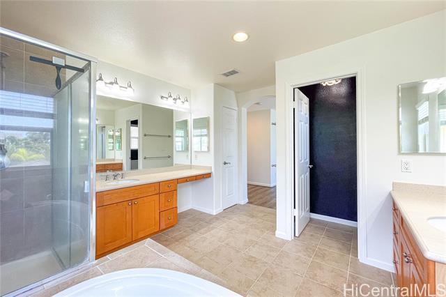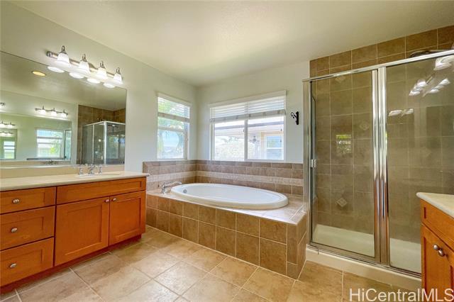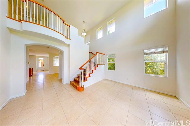 Welcome to your piece of paradise in the Ocean Pointe community! Step inside to discover an open floor plan featuring tile and vinyl flooring throughout for easy living. The versatile first floor includes a convenient bedroom and full bathroom, perfect for guests, in-laws, or a private home office. Upstairs, the primary suite offers a private balcony with ocean views. 14- owned solar panels under a favorable NEM agreement significantly reduce your electric bills. Step outside directly into an HOA maintained, lush green courtyard. You're just minutes from white-sand beaches, renowned golf courses, the Ka Makana Ali'i Shopping Center, and easy access to both the Ko Olina Resort Area and Honolulu.