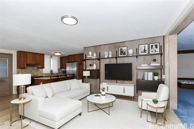 Welcome home to Ahuimanu! Discover this recently renovated 3-bedroom, 2-bath residence tucked away on a peaceful cul-de-sac. The open, airy layout includes a versatile bonus room—perfect for relaxing while enjoying the cool Kaneohe breezes. Upgrades feature stainless steel appliances, sleek cabinetry, beautiful countertops, and durable vinyl plank flooring. The separate washroom and storage area offer the convenience of its own entry, ideal for a home office or multi-generational living. With no neighbors behind, the backyard provides a serene and private setting, framed by the stunning Koolau Mountains. This inviting island home exudes warmth and is a must-see for anyone looking to experience the comforts of Windward Oahu living!