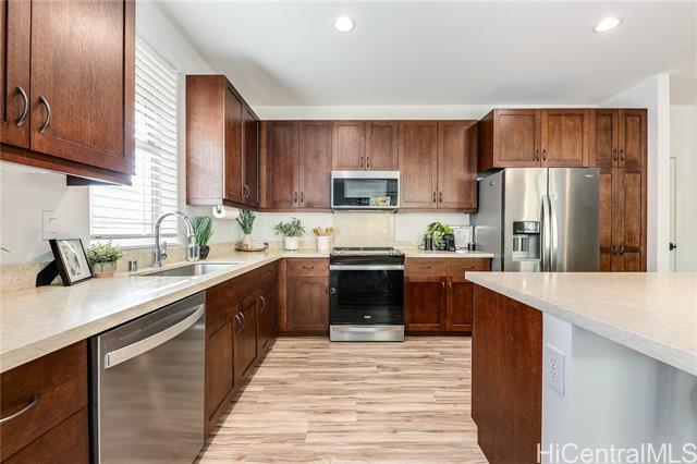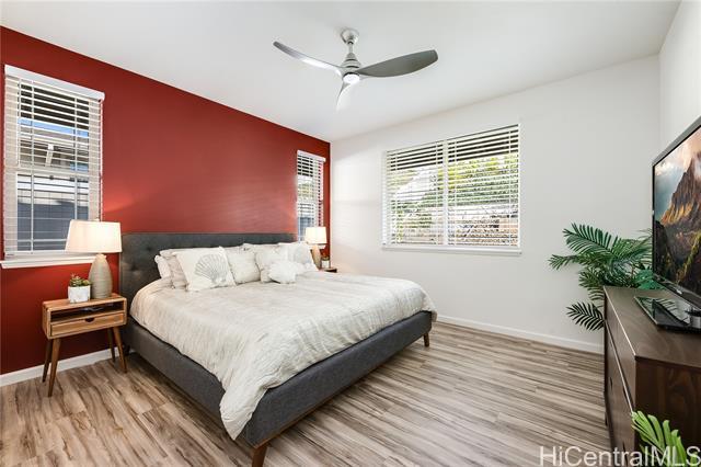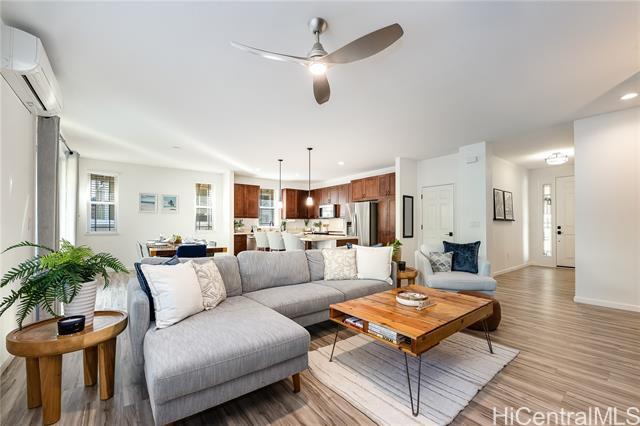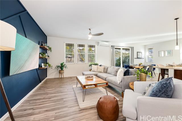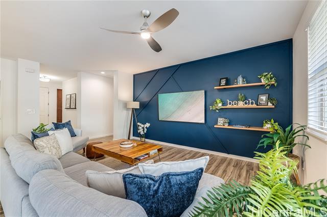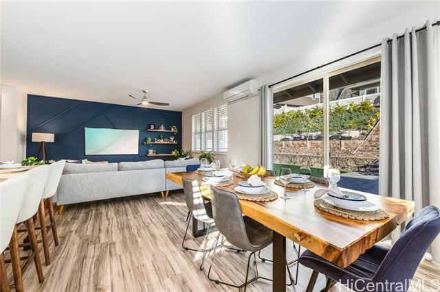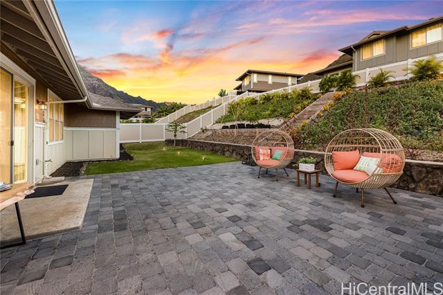 Legal Short Term Vacation Rental in Resort Zoned Cottages at Mauna'Olu, currently used as a primary residence and meticulously cared for. Luxury living in the Highly Desirable Floor Plan 3, this Single Level home offers more Interior Square Footage, featuring 3 spacious bedrooms and 2 beautifully appointed bathrooms. You and your guests will enjoy Split AC, Upgraded Luxury Vinyl Flooring, 9-foot Ceilings Throughout, and Aesthetic Accent Walls making this Pinterest Worthy Home perfect for their Instagram Posts! Situated on over 7,800 square feet of land, this property is an entertainer’s dream! Elevated Landscaping adorned with lush greenery, rock wall, native plants, outdoor shower, and automatic irrigation with ample room to relax, bbq or host gatherings under the Hawaiian sun. The custom garden steps will let you take in all the Makaha Ocean & Valley Views! Exclusive access to the Mauna'Olu Estates Gated Community the Cottages offer lifestyle amenities, Pool, Community Recreation Room & Gym! Proximity to world-class beaches in just minutes with lots of Dining & Shopping available if you take a cruise over to Ko’olina or Kapolei! Don’t miss the opportunity to Make Hawaii Home!