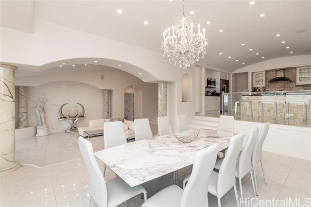Perched on the eastern facing perimeter of the prestigious Hawai’i Loa Ridge, 875 Ikena Circle brings a unique grandness to Oahu. Enjoy picturesque views of the Pacific Ocean, Hawai’i Kai Marina, Koko Head, and Portlock. A multi level layout provides the ideal recipe for entertainment and multigenerational living. The main level of the home showcases vaulted ceilings and an abundance of natural light. A spacious primary bedroom suite is situated on the main level adjacent to the living room. Make your way downstairs where you are presented with 3 suites along with an additional living room that opens to the pool deck. A detached pool house provides a personal sanctuary that can be utilized as a home office, a space for guests, or a cozy man cave. Amenities within the community include: Gated entry, 24/7 security, tennis & pickleball.