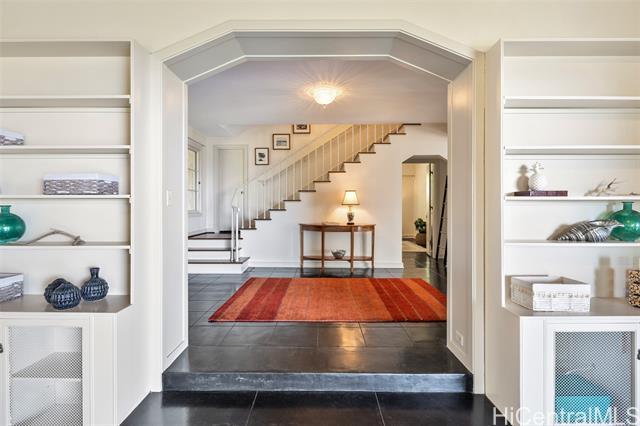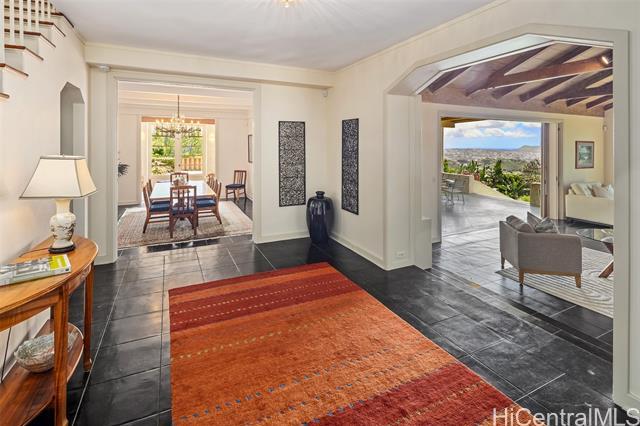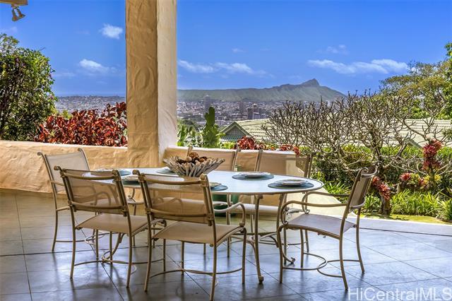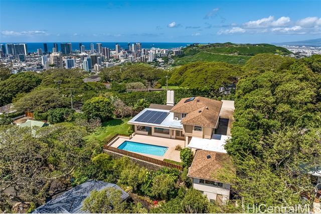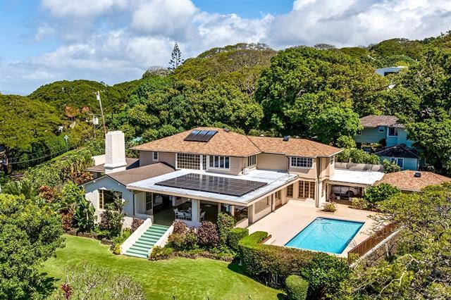 Perfectly situated on one of the prettiest tree-lined drives in Honolulu, known for its beautiful estates, this gorgeous classic treats you to panoramic Diamond Head, ocean, and mountain views. From the luxurious porte-cochere, a lovely hall opens to elegant living and dining rooms with high ceilings. The generous covered lanai and spacious pool overlook the landscaped lawn and magnificent views. You’ll be proud to entertain guests in museum-quality spaces or simply enjoy your serene, indoor-outdoor lifestyle. A desirable ground floor bedroom suite, family room, breakfast room, kitchen and plentiful storage complete the expansive main level. Upstairs are three more large bedroom suites, each with its own bath. A separate cottage provides flexible options for guests or extended living. Attributed to architect C. W. Dickey, who designed the original Halekulani Hotel and other island-style masterpieces, this home is on the Hawaii Register of Historic Places with property taxes of only $25/month. Lovingly maintained and upgraded with PV and more, the residence offers masterful design, privacy, and views in a stellar location.