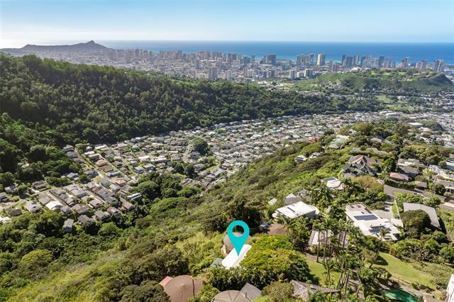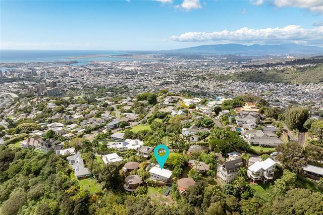 Fabulous Views! Enjoy sweeping ocean, city, and mountain vistas from this charming Pacific Heights residence, filled with light and bright interiors that create an inviting island ambiance. Privately positioned at the end of a palm lined driveway, this three bedroom home lives primarily as a comfortable single level, with the added versatility of a spacious basement area below, ideal for storage, a gym, etc. The open living and dining areas flow seamlessly to a covered outdoor lanai, where breathtaking views provide a stunning backdrop for everyday living and entertaining. A galley style kitchen offers generous counter space for the chef of the family and features stainless steel appliances paired with crisp white cabinetry, creating a timeless and functional workspace. Three comfortable bedroom suites are thoughtfully positioned to capture peaceful viewpoints framed by lush foliage and mature tropical landscaping, offering a sense of privacy and connection to nature throughout the home. Inspired by natural beauty and tranquil surroundings, this special island residence presents a wonderful opportunity to enjoy living in one of Honolulu’s most desirable hillside neighborhoods.
