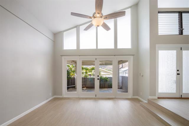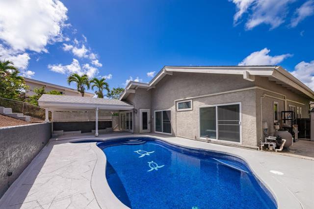 This single-family home near the entrance of desirable Kalama Valley neighborhood offers 2,153 sq ft of living space, with a pool & multiple patios for your enjoyment. Renovated in 2024, this property features 4 bdrms & 2 baths, making it ideal for families & guests alike. The home boasts a bright & airy layout, enhanced by contemporary finishes & fixtures throughout. The open-concept living & dining areas connect seamlessly to the kitchen & breakfast area, perfect for entertaining or family gatherings. Stainless steel kitchen appliances with wine fridge built into full-size island for added convenience. Ceiling fans & split air conditioning throughout. Enjoy the outdoor living space including two covered patios, whether for entertaining, play, or simply enjoying the serene surroundings with no neighbors behind. Double garage with space for storage, and driveway parking for additional vehicles. Famous Sandy’s Beach, Hawaii Kai Golf Course & Koko Head hiking are nearby. In addition, conveniences of shopping and restaurants at Koko Marina Shopping Center, Hawaii Kai Towne Center (incl Costco) & Hawaii Kai Shopping Center.