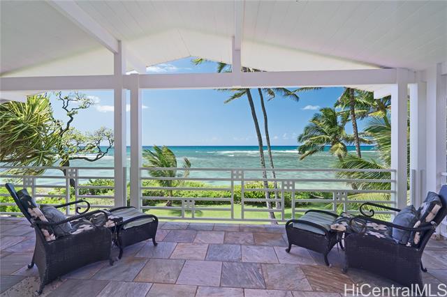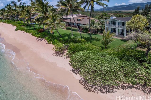 Price Improvement!!! Coveted Crozier Drive Beachfront on Secluded Mokuleia side of North Shore. Sandy, Swimmable Beach...Two story, 4-bedroom, 3-full bath, turnkey home w/ attached garage, split A/C in bedrooms, recently updated, fully furnished. Those who know, know. The location is prime, no traffic, easy access on and off the North Shore, making your trips to urban destinations Mililani, airport, and Honolulu much easier. The home sits on a beautiful green lawn with lush landscaping and wrap around lanais upstairs and down to take in the coastline views. Most appliances updated in 2023, brand new A/C split systems installed in all bedrooms in 2022. Come experience the peaceful Hawaiian luxury that is Crozier Drive.