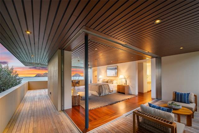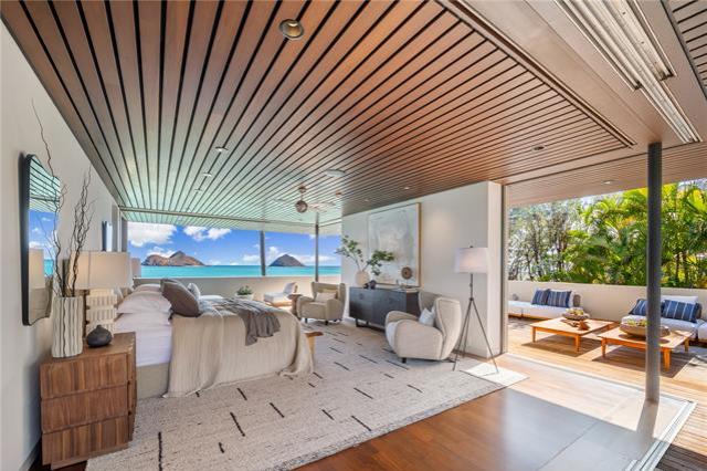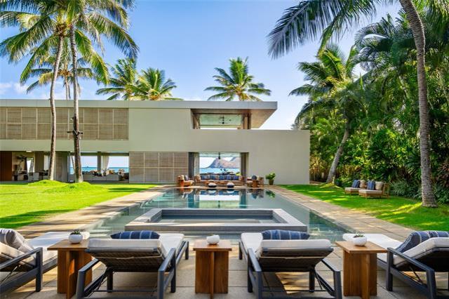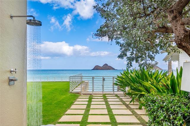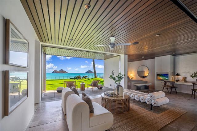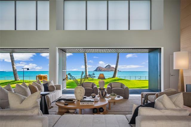The Mokulua Estate is a breathtaking oceanfront sanctuary set within the prestigious Lanikai neighborhood. This exceptional property offers unobstructed views of the Mokulua Islands from nearly every vantage point. With over 150 linear feet of ocean frontage and a private gated entrance, the estate provides an ideal blend of seclusion, security, and harmony with its natural surroundings. Encompassing more than 10,000 square feet of refined indoor/outdoor living space, this state-of-the-art residence, designed by award winning architect Jim Jennings showcases dramatic ocean and mountain vistas throughout. A guest house and caretaker’s quarters ensure ample accommodation for family and guests. Direct ocean access from the backyard invites an active island lifestyle, from swimming and snorkeling to kayaking, surfing, fishing, or simply relaxing by the pool in your own tropical paradise. This is a rare, Once-In-A-Lifetime offering you won’t want to miss!!