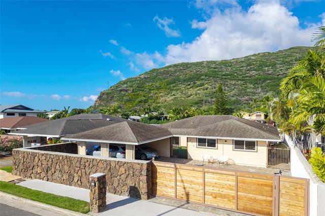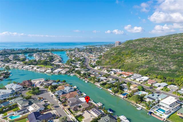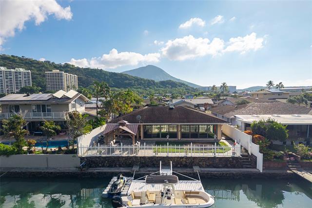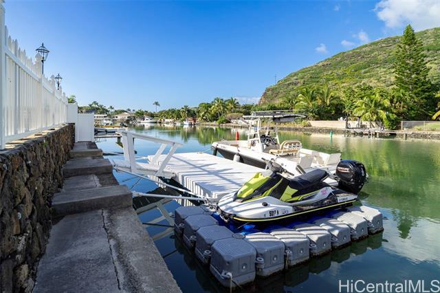 Come see this single level marina front home in the highly desirable Spinnaker Isle community of Hawaii Kai. Positioned on one of the best lots in the neighborhood, this property offers a rare combination of privacy, security, and direct marina access with a private boat dock, ideal for boating, paddleboarding, and true waterfront living. Designed like a private compound, the home is set behind a striking rock wall with a powered gated entry leading into the carport courtyard, followed by a second gated entry that opens to an expansive, usable outdoor space before reaching the front door. This thoughtful layout creates a strong sense of separation, security, and tranquility rarely found in marina front communities. Inside, the home features a spacious open floor plan with high vaulted ceilings, large windows, and abundant natural light throughout. The living area flows seamlessly to a generous marina front patio, perfect for entertaining or enjoying the indoor outdoor lifestyle. A complete renovation in 2019 included a redesigned kitchen and appliances, updated flooring, split air conditioning systems, and more. A rare opportunity in a tightly held waterfront enclave.