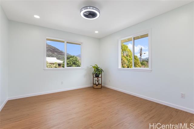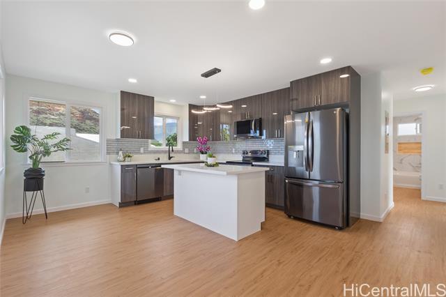 Beautiful brand-new 5-bedroom, 3-bath home in Ma?ili offering flexible living options. The upper level features 3 bedrooms, 2 baths, and a full kitchen with stainless steel appliances. The lower level includes 2 bedrooms, 1 bath, and a wet bar, providing added flexibility for extended living arrangements. Parking accommodates up to 4 vehicles, with possible additional side parking. Conveniently located near Ma?ili Elementary School, minutes to the beach, and a short drive to Ko Olina and Kapolei for dining and shopping. No HOA. Must see!