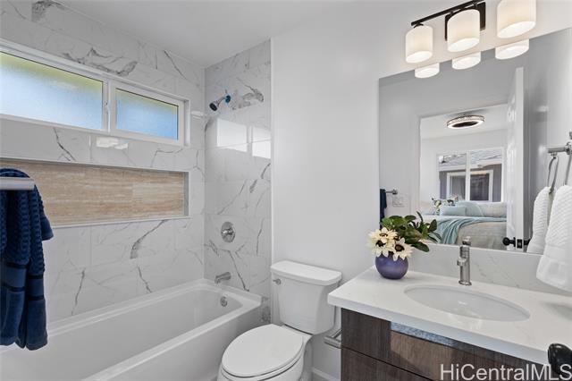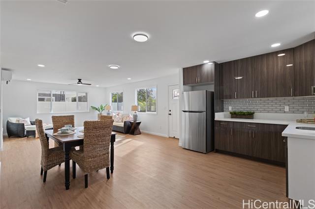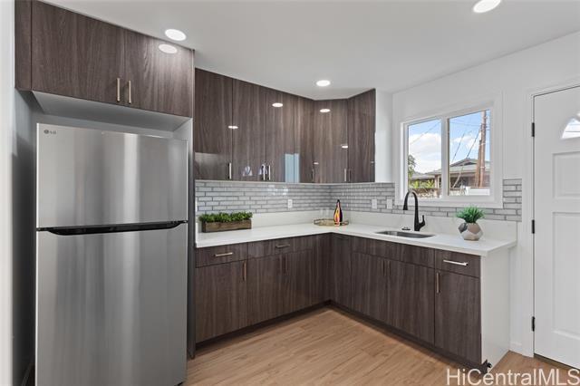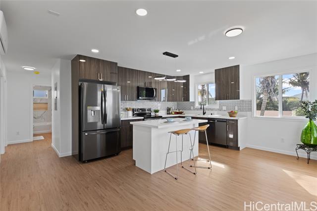 Another brand-new Unit #2, offering the same beautiful design as Unit #1. This 5-bedroom, 3-bath home provides flexible living options ideal for a growing family or extended household needs. The upper level features 3 bedrooms, 2 baths, and a full kitchen with stainless steel appliances. The lower level includes 2 bedrooms, 1 bath, and a wet bar. Parking accommodates up to 4 vehicles, with possible additional side parking. Conveniently located near Ma?ili Elementary School, within walking distance to the beach, and a short drive to Ko Olina and Kapolei for shopping and dining. No HOA.