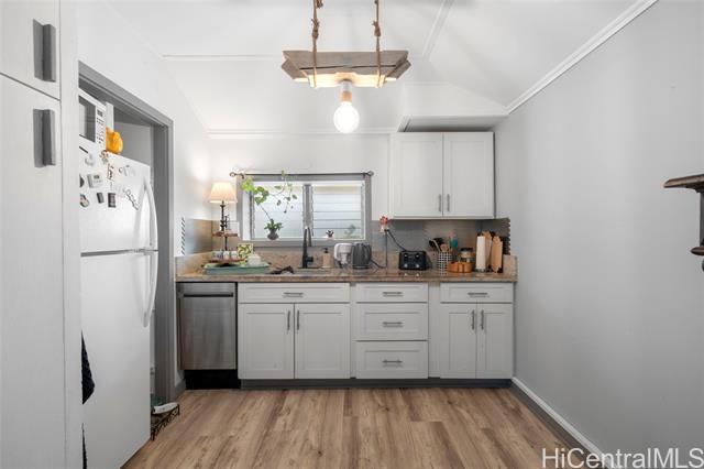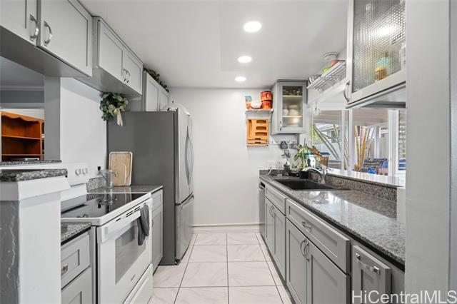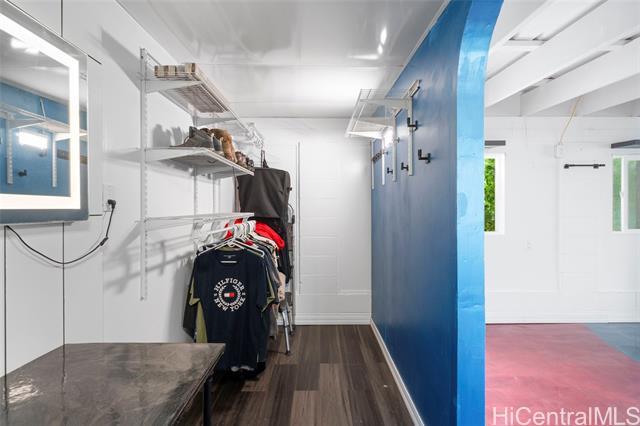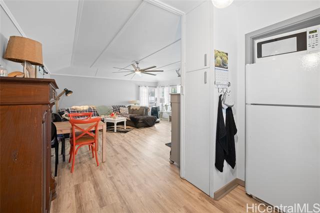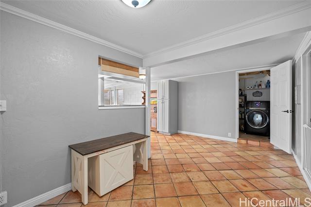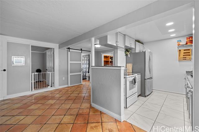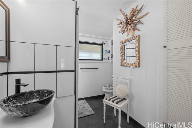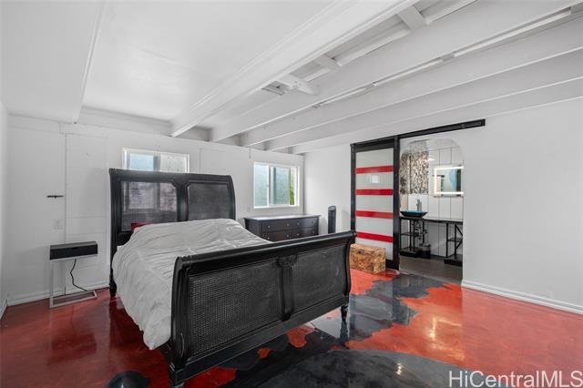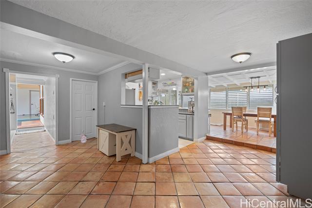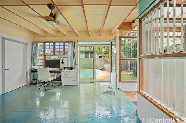 First OPEN HOUSE this Sunday, January 11th from 1-4 pm! Welcome to this unique Kalama Tract home located less than two blocks from the beach and minutes from Kailua Town. This vibrant property features a distinctive floor plan, bold colors, and artistic design elements, offering a rare opportunity for buyers seeking a home with character and creative flair. The flexible layout allows for customization and inspired living. The main level includes three bedrooms, two bathrooms, a dedicated office/den/family room, and a separate laundry room with a Smart UltraFast electric washer/dryer combo with ventless heat pump technology. An upstairs one-bedroom, one-bath unit with kitchenette provides flexibility for guests or extended family. Outdoor features include a pool and a jacuzzi. Energy-efficient upgrades include nine PV panels with Tesla Powerwall, ABS solar pool heating, tankless hot water for the primary suite, propane hot water for the main house, and a 220V EV charging service. This beach-close home offers an optional membership to Kalama Beach Club (potential eligibility), character, flexibility, and a truly special Kailua lifestyle.
