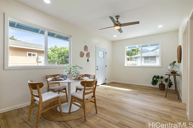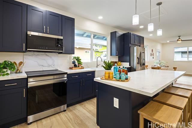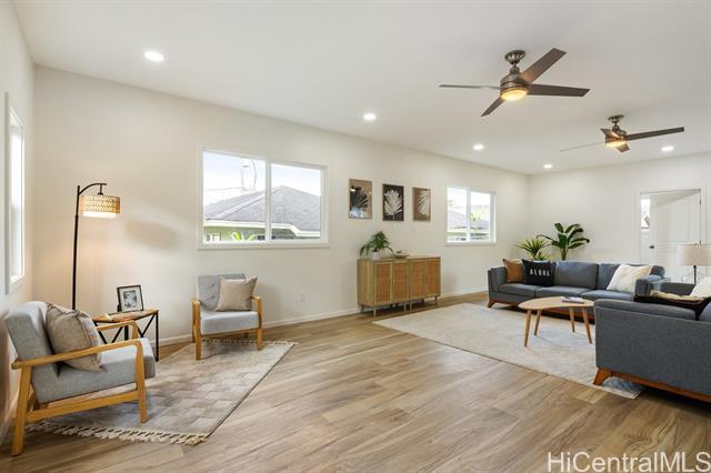 Incredible opportunity to own a spacious 3 bedroom, 2 bath single family home in Kaneohe! Completely remodeled in 2025 from floor to ceiling, this home is ready for you to start the year off right entertaining all your family and friends. Designed with both style and functionality in mind, this residence offers a bright and airy atmosphere with abundant natural light throughout. The open-concept kitchen boasts new stainless steel appliances, solid surface countertops with a modern touch screen refrigerator. It combines the feel of new construction convenience with the charm of the Kaneohe community. Whether your're hosting gatherings or enjoying quiet evenings at home, the spacious layout provides plenty of room to hang out and connect with your loved ones. Ideally located with convenient access to Pali, Likelike and H3 freeways for a easy commute where ever your day takes you around the island! Just minutes to the Windward City shopping center, dining, schools and Kailua beaches — all while being surrounded by the beauty of the mighty Koolau mountains as your backdrop. Don't miss this one - it won't last long!
