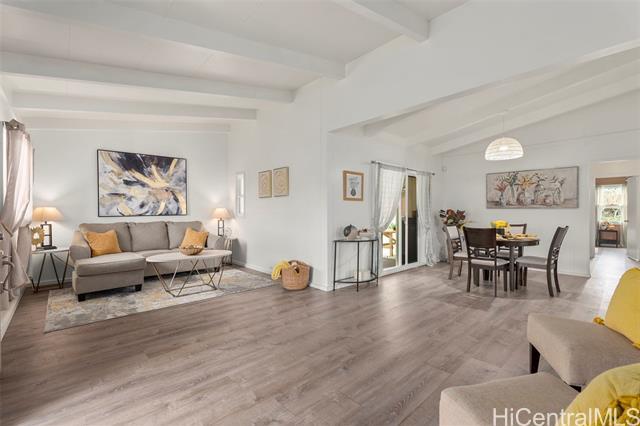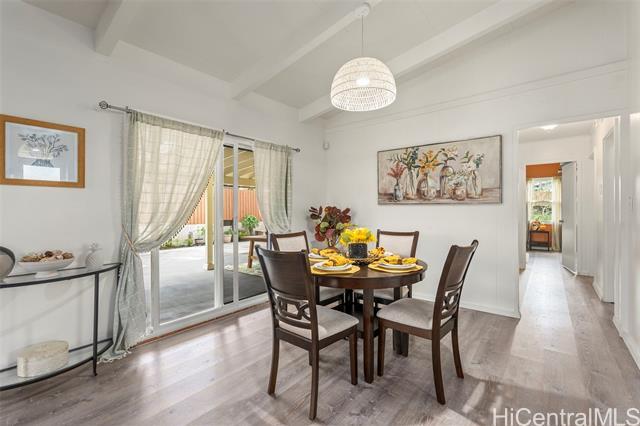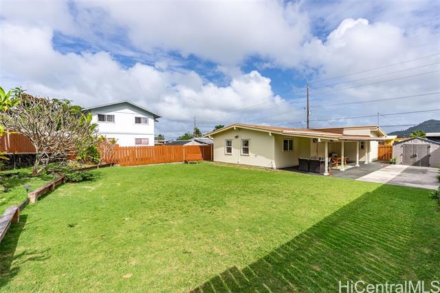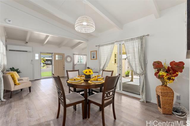 This charming 3-bedroom, 2-bath home in desirable Kapunahala features updated kitchen and baths, luxury vinyl plank flooring, new double-panel vinyl windows and doors, roll-down lanai shades, and more! Enjoy indoor-outdoor living with a spacious lanai-perfect for entertaining-and a spacious backyard with endless possibilities. Conveniently located near shopping, dining, and freeway access. A must-see home offering comfort, convenience, and versatility.