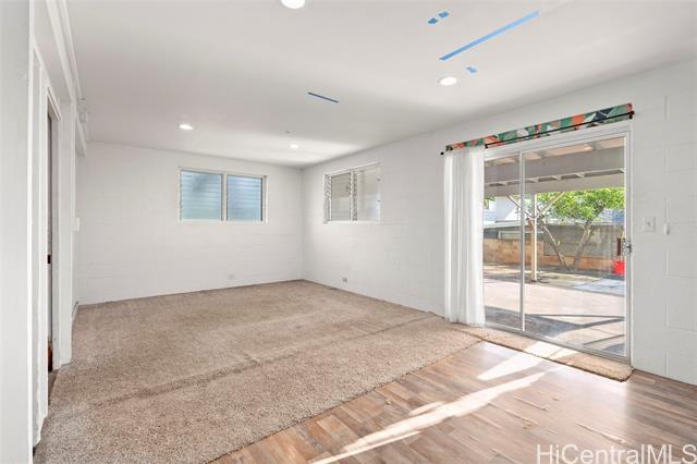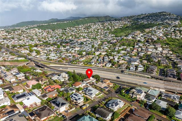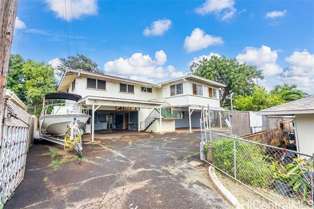 Excellent location, great layout, and a usable lot! This exceptional property is located on a private flag lot away from the main road. It sits above the highway and has excellent natural airflow and views looking out across Kahala to the ocean. The fully enclosed yard provides generous parking, yard space, and a two-car carport. Upstairs, you'll find the living room, kitchen, 3 bedrooms, 2 baths, and a large enclosed lanai for added living space. The downstairs has a separate entrance and features a living room, bedroom, and bath, with a large covered lanai. Well-suited for buyers seeking a property they can redesign and personalize.