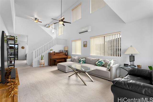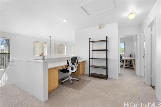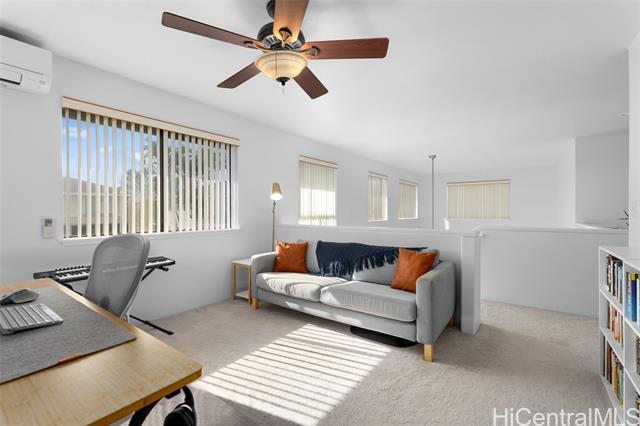 Welcome home to this inviting 3-bedroom, 2.5-bath residence in the desirable Royal Kunia community, located on a quiet cul-de-sac. Situated on a generous 5,530 sq ft lot, this home offers privacy, outdoor space, and a family-friendly setting. With approximately 1,948 sq ft of interior living space, the flexible floor plan is well suited for modern lifestyles. An upstairs den provides added versatility and can be used as a playroom, home office, or study, with the potential to convert to a fourth bedroom to accommodate growing or changing needs. Residents of Royal Kunia enjoy access to a private Recreation Park with open field space, basketball and tennis courts, a children’s tot lot, and restroom facilities, along with membership access to the Royal Kunia Community Recreation Center. Conveniently located near schools, shopping, dining, and major commuter routes, this home offers a wonderful opportunity for comfortable family living in a well-established community.