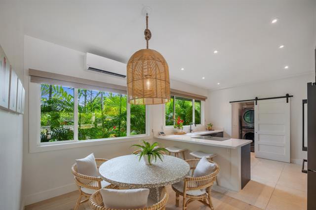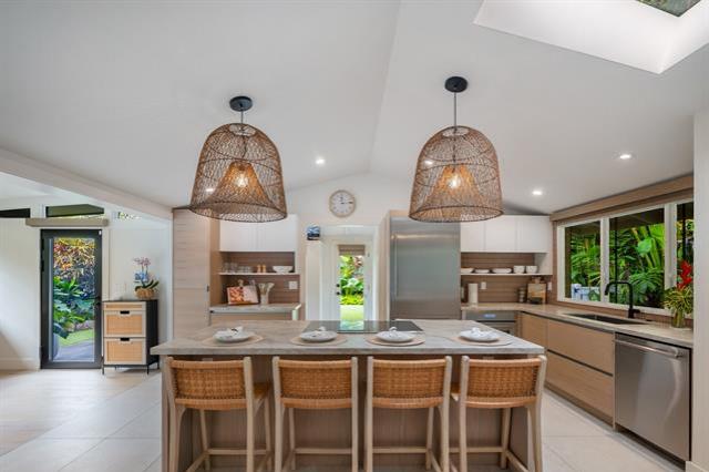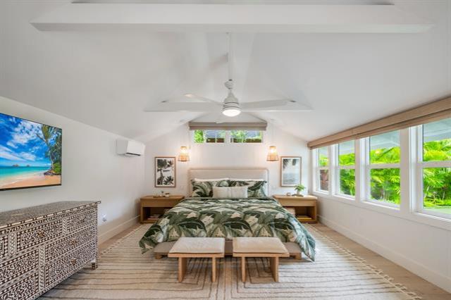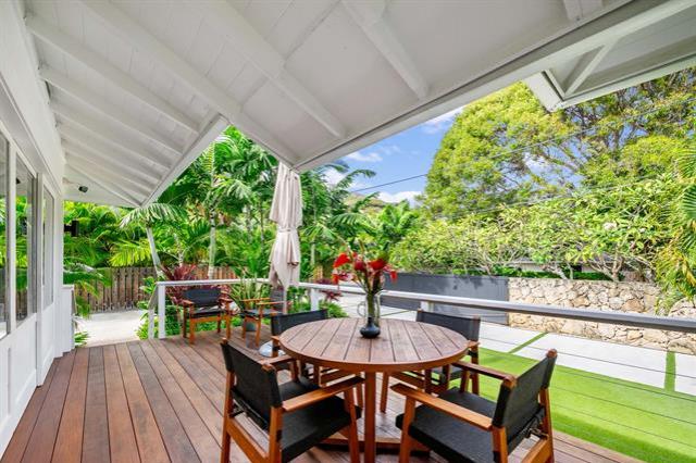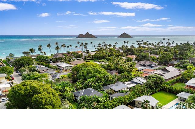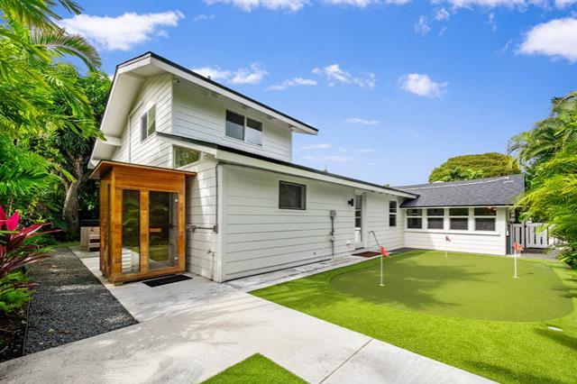 Rarely available: large lot with 2 homes on one of Lanikai’s most coveted beach streets. It's easy to fall in love with this dream property where privacy, luxury, and lifestyle converge. Elevated, refined & stacked with extras, this custom compound features a beautifully renovated 4bd/3bath main house & an adorable 2 bd/1.5bath guest cottage. The motorized-entry gate leads to generous driveway parking +enclosed 2-car garage. Privately set back from the street, the main house showcases an open-concept modern design w/ sleek chef’s kitchen + prep kitchen, 3 spa-like bathrooms, split AC & spacious primary suite w/ double sinks & custom walk-in closet. Thermador, Sub zero & Bosch appliances, Taj Mahal quartzite countertops & beautiful Duchateau wood floors blend effortlessly w/ lush resort style landscaping for indoor/outdoor life without compromise. Unwind in the sauna or perfect your short game on the custom putting green. A new roof with 40-owned PV panels, 3 Tesla batteries & a wired video security system provide extra piece of mind. Additional storage room off the garage is ideal for surf & paddle boards or your home gym/office. Don't miss this opportunity to live the dream!