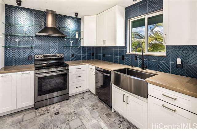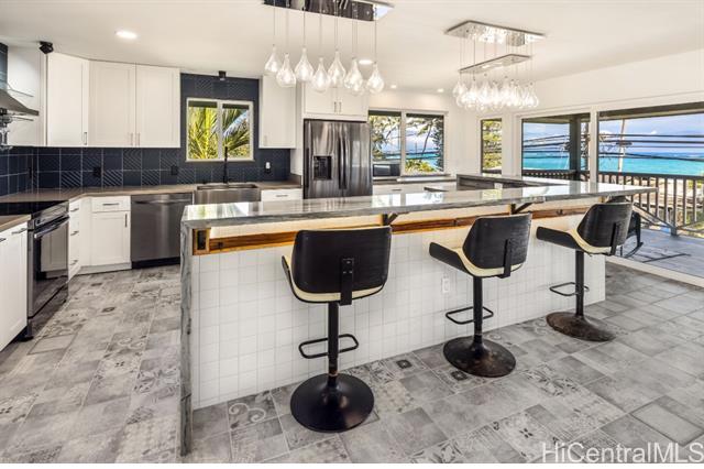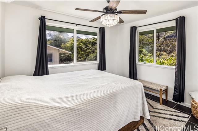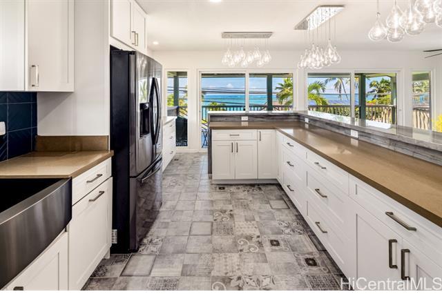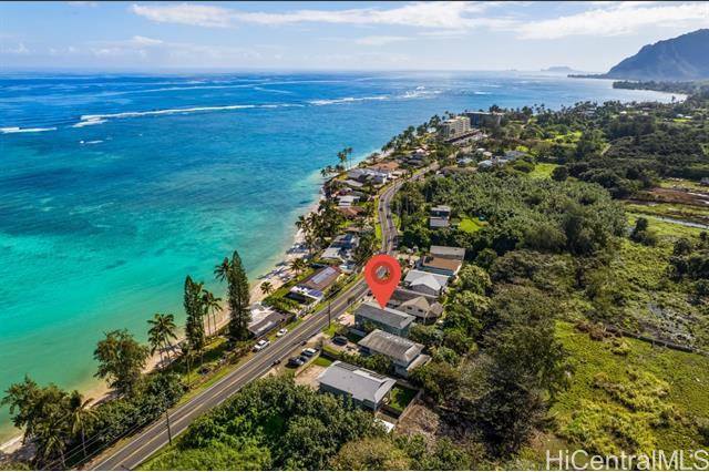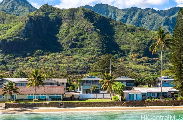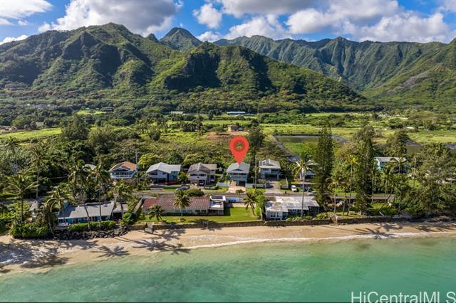 Perfectly positioned in Hau'ula on Oahu's North Shore, where life moves at a more relaxed, country pace and beautiful surfing beaches stretch along the coastline, this stunning two-story residence captures the essence of island living. Enjoy sweeping ocean views from the front of the home and majestic Ko-olau Mountain views from the back, creating a breathtaking backdrop from sunrise to sunset. Completely remodeled in 2022, the home showcases a sleek, modern design with updated appliances, clean lines, and quality finishes throughout. The thoughtful layout offers 2 bedrooms and 1 bathroom on the main level-ideal for guests or multi-generational living-while the upper-level features 3 additional bedrooms and 2 bathrooms, including a primary room with en-suite bath. Large glass sliding doors lead out to the ocean-facing lanai providing the perfect space to unwind in the evenings, enjoy cooling ocean breezes and take in breathtaking sunrises. A covered 2 car carport adds convenience, while the homes elevated setting enhances natural light and airflow throughout. Move-in ready and beautifully updated, this North Shore retreat blends modern comfort and contemporary island living.