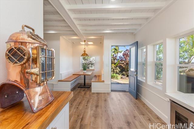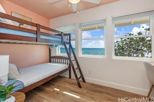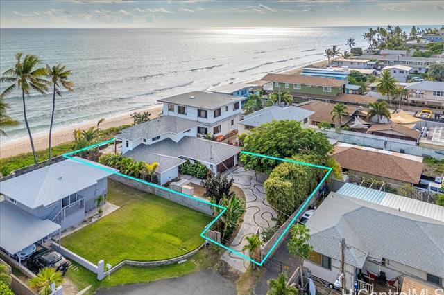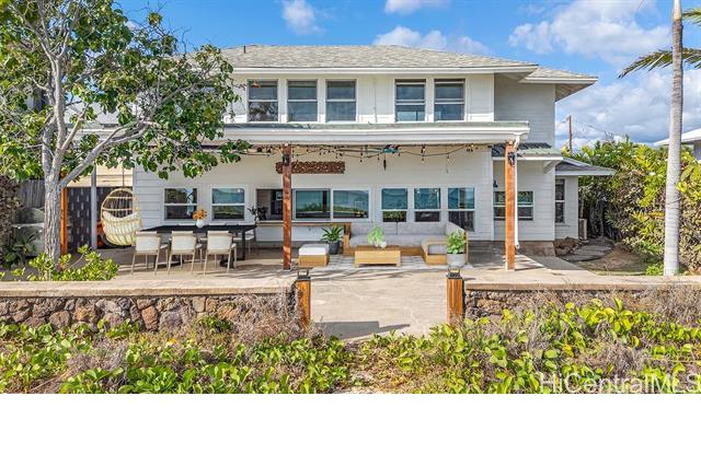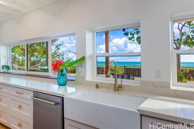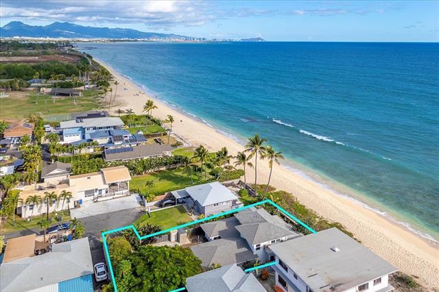**Discover your beachfront paradise in Ewa Beach!** This meticulously remodeled 3-bedroom, 2-bath home, rebuilt in 2020, offers an unparalleled oceanfront lifestyle. Enjoy breathtaking views of the ocean and Diamond Head, with direct beach access and a spacious garage for all your beach gear—think kayaks and surfboards! Every detail of this gem has been curated for modern living, featuring elegant quartz countertops, trendy finishes, and a chef's kitchen equipped with a massive Thermador 6-burner stove and matching hood. Plus, a custom laundry chute makes everyday living a breeze. Wake up to the soothing sounds of waves, step onto the inviting sandy beach, and savor stunning sunsets from your covered lanai. Located just a short walk from the 360 Ewa Beach Country Club and Pu'uloa community beach park, you’ll also enjoy easy access to Ewa’s fantastic amenities and shopping options. This is beachfront living at its finest and offers unbeatable value on Oahu's shoreline—don't miss out! 2 Photos are enhanced.
