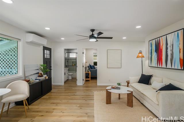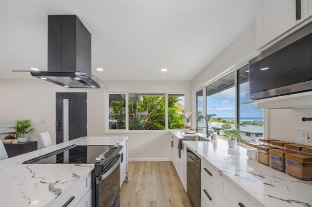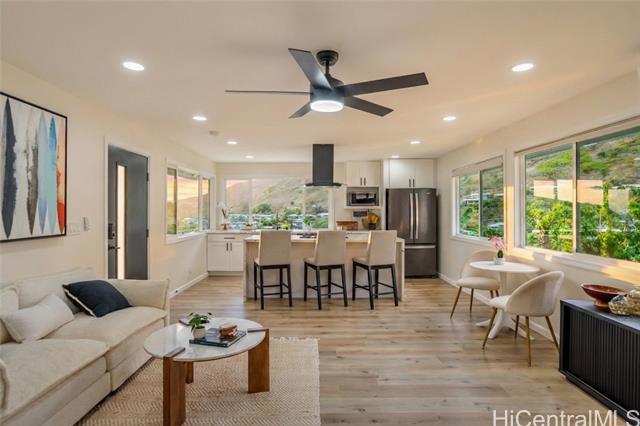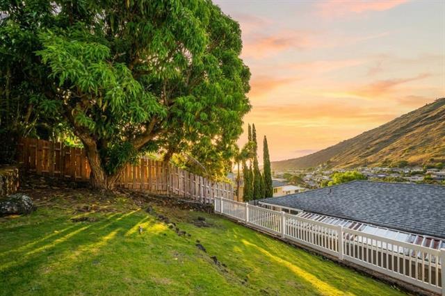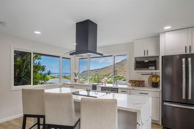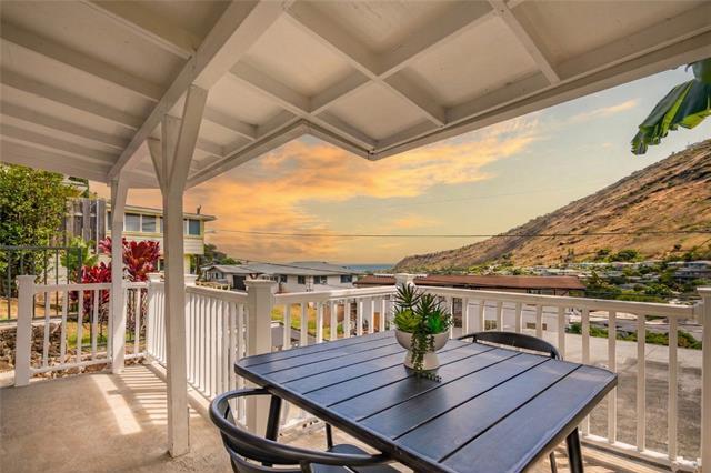 Opportunities like this are rarely available. Priced $240,000 under tax-assessed value, this Aina Haina hillside residence reenters the market at a refreshed list price and aesthetic, offering both immediate value and long-term upside. Set above the neighborhood, the home enjoys expansive mauka-to-makai views that shape a calm, elevated daily lifestyle. Featured on House Hunters and recently updated, the main level offers three bedrooms, two bathrooms, an open kitchen with newer appliances, and luxury vinyl plank flooring. Split air conditioning and electric window shades provide comfort and ease. The lower-level studio suite, complete with a renovated bathroom and wet bar, opens the door to flexible living and investment possibilities, whether used for guests, ohana, or supplemental income. Outside, a terraced yard with fruit trees invites connection and quiet moments alike. Minutes from everyday conveniences, iconic beaches, and local dining, this home supports an easy and connected island lifestyle. Come experience this hale in person and see what makes it special.