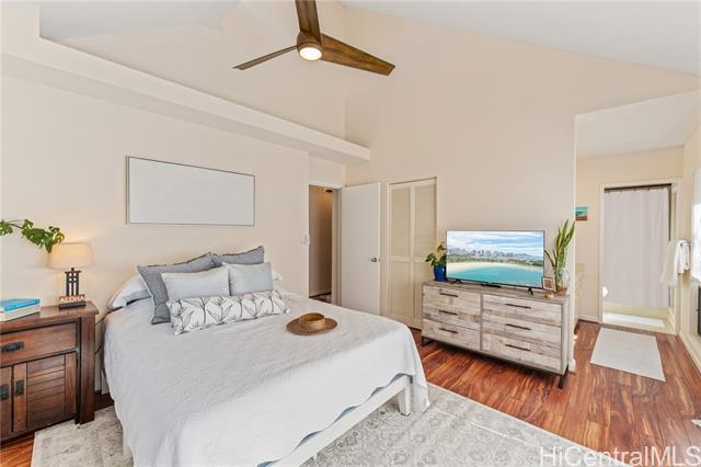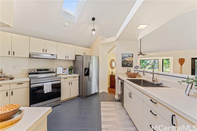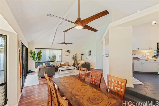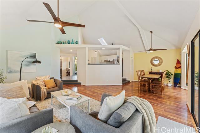 Golf course frontage with ocean views in the heart of Laulima. This scenic drive home is a daily reminder of why you live in Hawai?i. Bright and airy, the residence offers three bedrooms and two baths, highlighted by soaring vaulted ceilings and a large upstairs loft, ideal for a home office, media room, play space, or 4th bedroom space. Step outside to the open patio and enjoy direct views of the Hawai?i Kai Golf Course, with seasonal whale sightings visible in the distance. The primary suite features a generous walk-in closet, providing comfort and functionality. Ideally located just minutes from sandy beaches, scenic hiking trails, and the conveniences of Hawai?i Kai shopping, this is a rare opportunity to own a truly special piece of island living.
