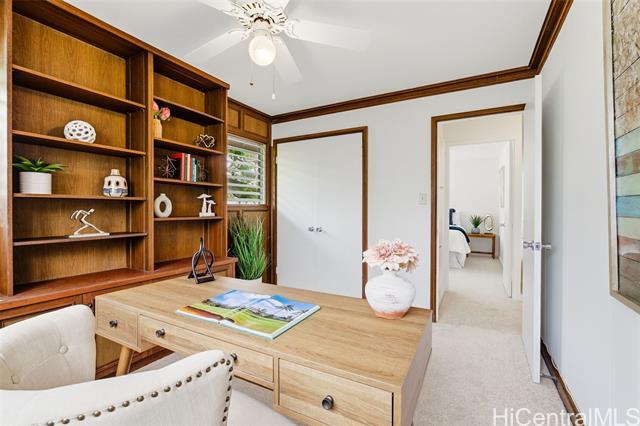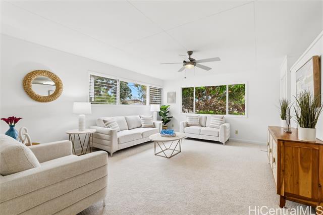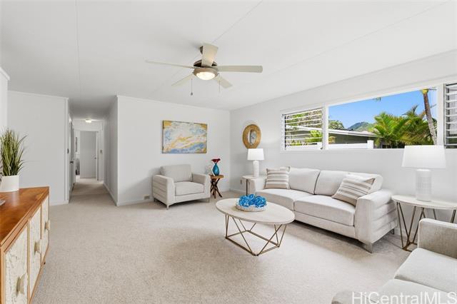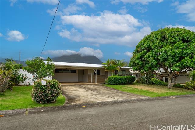 This inviting single-level residence in the Olomana neighborhood in Kailua sits on a quiet street with minimal through traffic, offering privacy and breezes from its location at the bottom slopes of Olomana/Three Peaks. The property features a new roof, fresh interior paint, new flooring, including carpet and luxury vinyl. The kitchen includes a new refrigerator and oven/stove (2025), making it move-in ready. Enjoy the lush, fruiting landscape, including a Fairchild mango tree, avocado tree bred by a UH AG professor that produces extra large/creamy avocados, calamansi, coffee, lemon, lime, chico fruit tree (sapodilla), rosemary and bay leaf. The backyard provides an ideal space for entertaining or relaxing, while the workshop/shed adds functional space for hobbies or storage. This home offers the perfect combination of privacy and convenience. Just minutes from award-winning blue Ribbon Maunawili Elem. School, Olomana Park, fire station, Sunday farmers market, and Kailua town's shops, grocery stores, restaurants, and beautiful beaches. Easy access to Castle Medical Center and the Pali and H-3 highways.
