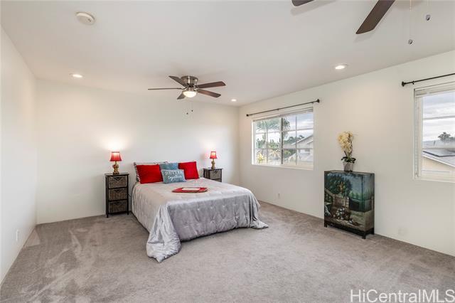 VA ASSUMABLE Loan LESS than 4%!!!! Nestled in Ewa Gentry’s Sun Terra South, this 5-Bedroom, 3-Bath, nearly 2,000 square foot home offers flexible living with a FULL Bedroom and FULL Bathroom with a TUB Downstairs. This amazing home also has a Private Owner’s Suite Upstairs with a Walk-In Closet and Double Vanity Sinks and Cabinetry. Two separate Living Rooms invite relaxation and entertainment, while the Dining Room opens into a Kitchen with a Walk-In Pantry. Ceiling fans and AC breeze will keep the home cool throughout, and a PHOTOVOLTAIC system powers the home and hot water for low electric bills. 2 CAR Garage (with a Water Softening System inside) plus 2 extra parking spaces, means plenty of private parking for your family and friends. They will also enjoy your spacious backyard overlooking the 4TH HOLE on the Coral Creek Golf Course. This is what island living is all about. Alooooha!