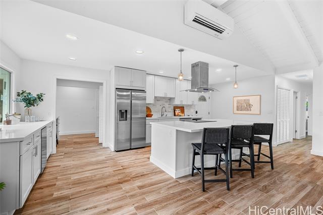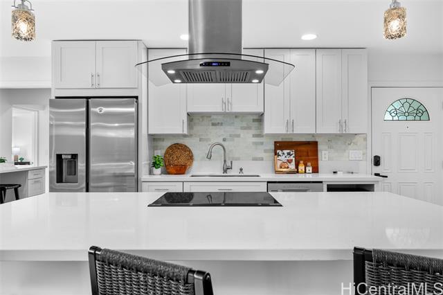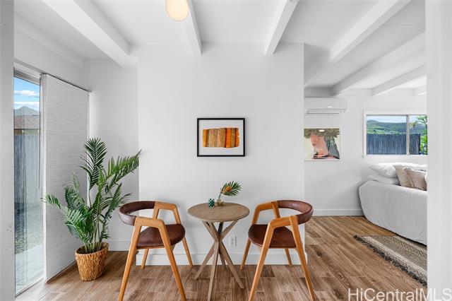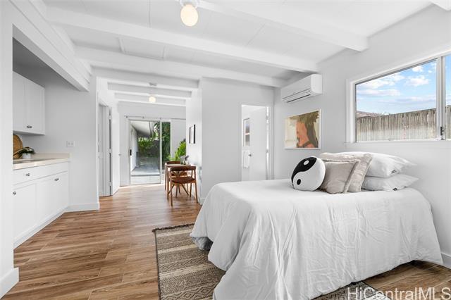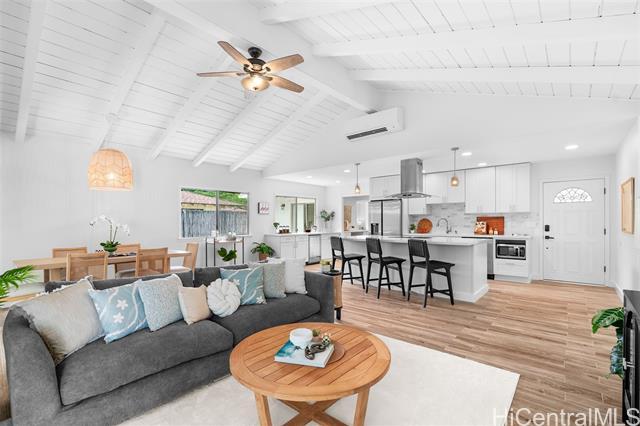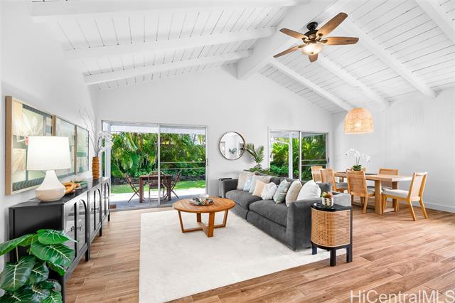 Completely ready to move right in! Brand new gorgeous plank ceramic tile floors throughout home. Open concept floor plan with vaulted ceilings. Large sliding glass doors in living room & dining room bring in brightness & light. Covered 161 sq ft lanai extends the living space with an outdoor/indoor feeling and lovely tropical, easy-to-care for landscaping. All brand new or newer stainless electric appliances in kitchen with newer cabinets, quartz countertops and deep, stainless farm sink. Main home is 4 bedrooms, 2 bathrooms with separate entry lockout studio suite for total of 5 bedrooms, 3 bathrooms and 2,067 sq ft of living space. All bathrooms have been recently updated with attractive tile in shower, new vanities & solid surface countertops. 2 car garage with ample room for storage. 18 owned PV panels help to offset the electric bill substantially. Close to Hamakua Drive and all the great Kailua restaurants, stores and businesses. 1-1/2 miles to Kailua Beach, 12 miles to downtown Honolulu and 19 miles to Honolulu International airport. First Open House: March 1, 2026 @ 2-5pm.