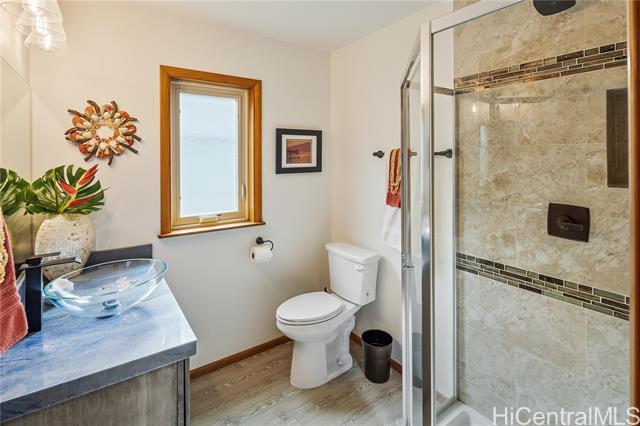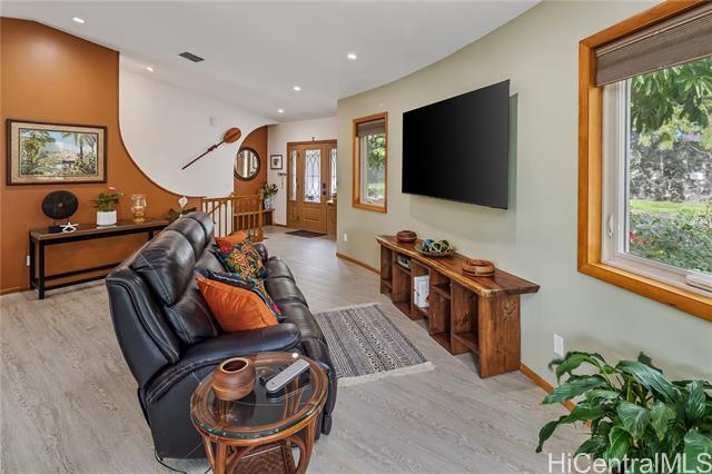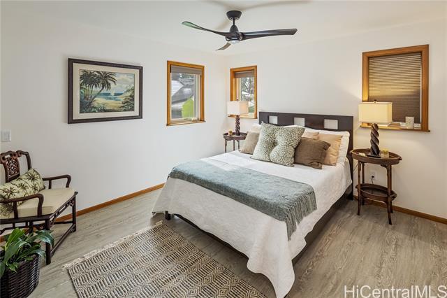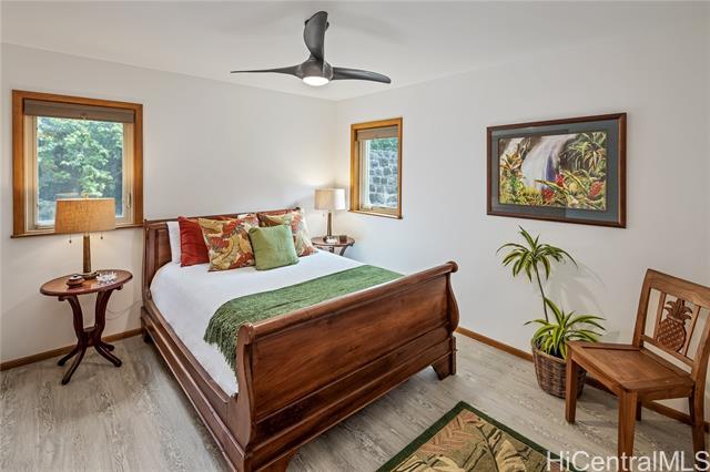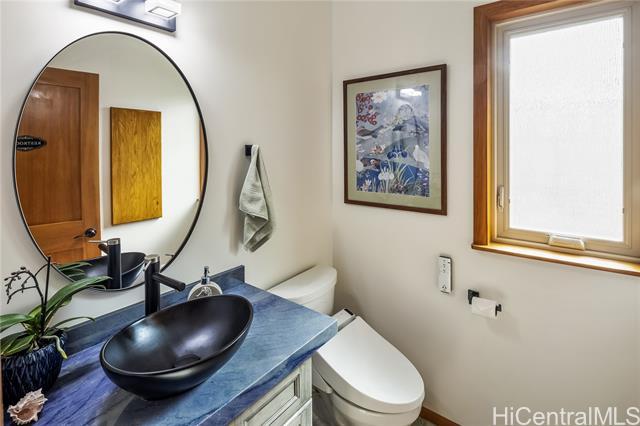 Nestled on a quiet, tree lined section of Punchbowl crater, this custom retreat is a rare find in the heart of Honolulu! Completed in 2021 by a contractor for his family, the home showcases craftmanship and design touches seldom found at this price point. Designed to maximize a unique lot and offer exceptional flexibility, this 3-story single family residence features gracefully curving walls, a gently domed ceiling and thoughtful detailing with 5 bedrooms, 3.5 bathrooms. The interior staircase can be left open to access all levels or closed off dividing the home. The upper two floors become a 3-bedroom/2.5 bath, and the ground level a 2-bedroom/1 bath suite with its own entrance, ideal for multigenerational living, guests or rental income. A versatile one-car garage doubles as a workshop. Nicknamed “Chateau Bleu,” this well-constructed home sits on a curving, shady road accented by rock walls that add to its charm. This feels like an urban Shangri-la peacefully perched above the amenities of the city center.