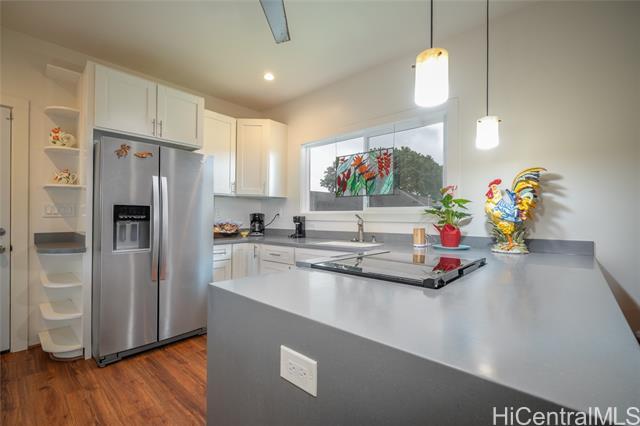 3 BR, 2 Bath Charming Home with 2 Car Carport on former Lychee orchard land. Rebuilt in 2017. Modern, open kitchen with Corian counter tops. Inviting front Lanai and high ceilings in home. New stove. Washer & Dryer included. Fenced yard & ample storage space. Close to Wahiawa town and Ka'ala Neighborhood Park.