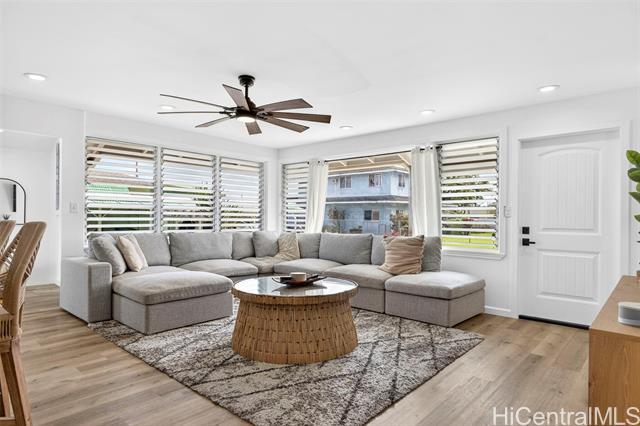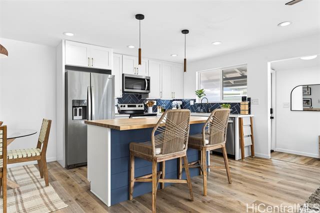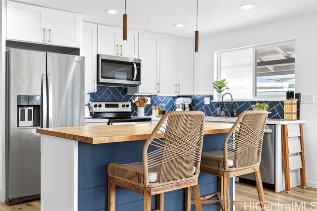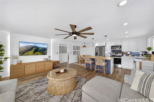 BEAUTIFULLY RENOVATED in 2022 and tucked into one of Kailua’s most beloved neighborhoods, this single-story home offers the relaxed island lifestyle so many dream about. Just under a mile from world-famous Kailua Beach, mornings begin with soft sunrise colors & a peek at Mount Olomana right from your living room, while days flow effortlessly between indoor comfort and outdoor living. The thoughtfully updated interior features modern finishes, quartz countertops with warm veining, butcherblock island, waterproof luxury vinyl flooring, updated cabinetry, & split AC for year-round comfort. Outside, the newly landscaped backyard offers a fresh lawn and a cool covered patio perfect for weekend barbecues, or unwinding after a day at the beach. Located on a quiet, low-traffic street with plenty of guest parking, this home also offers freedom from HOA fees & convenience to nearby parks, shopping, dining, Target, Whole Foods, plus easy access to H-3 & the Pali. With a dedicated indoor laundry room, carport storage, & 2022 termite tenting, this home blends peace of mind with the charm & ease of Windward living — experience the Kailua lifestyle! (One or more photos have been enhanced)
