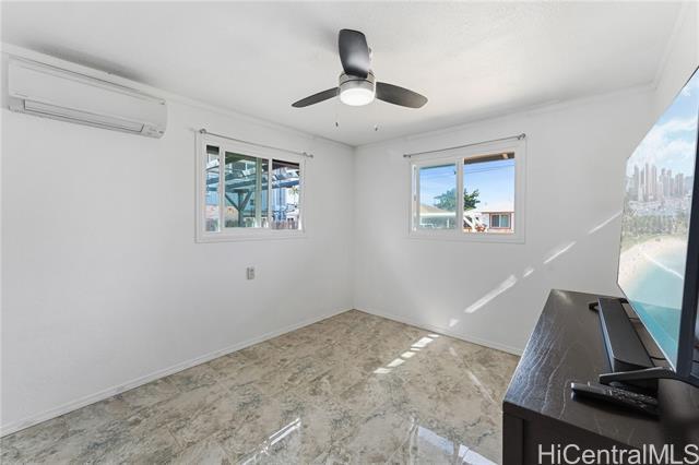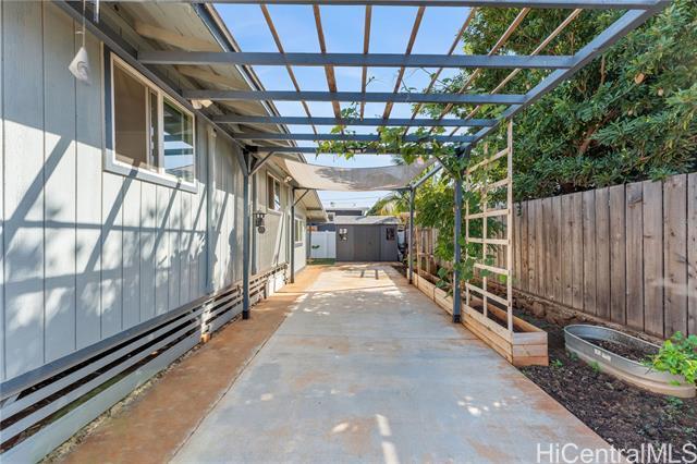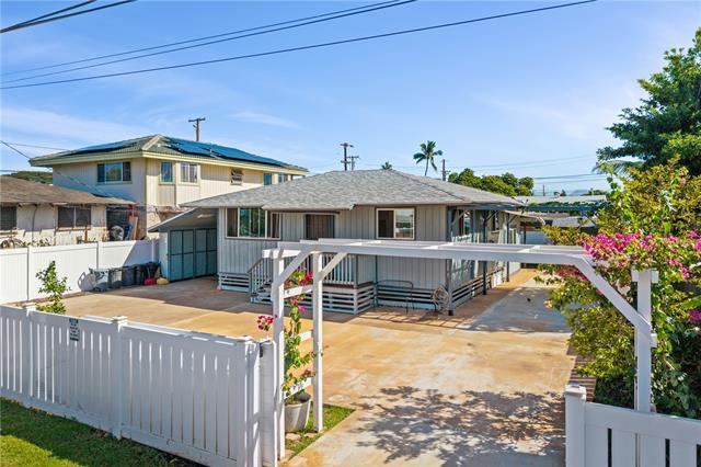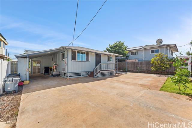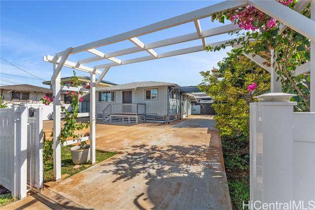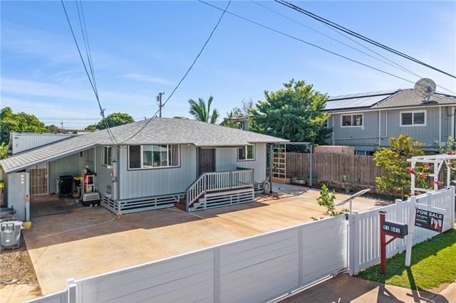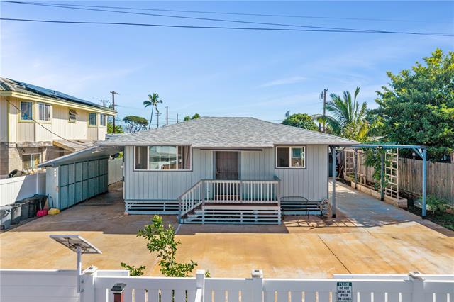 What a steal! Enjoy comfortable island living at an affordable price point. A beautiful renovated single-family home in Ewa Beach offering move-in-ready comfort, space, and freedom, with no HOA. Thoughtfully updated from top to bottom, with pride of ownership evident throughout, this home features a brand new roof, a combination of automatic and manual gates, providing both convenience and secure access, a fully fenced 5,040 sq ft level lot. The paved front yard allows parking for up to eight vehicles, perfect for gatherings or multi-car households. The main home offers an open-concept kitchen, two bedrooms, and one full bathroom. The thoughtfully rebuilt addition features double-wall construction, vinyl flooring, a second living room, an updated bathroom, and an additional bedroom. the home is also equipped with 18 leased PV solar panels. Enjoy seamless indoor-outdoor living with mature fruit trees, low-maintenance faux grass, a spacious paved yard, and relaxing garden space in a safe quiet neighborhood. Expanded living area offers flexible use beyond tax records. Seller is offering a $10,000 credit toward permitting if buyer chooses to pursue post-closing. Buyer to verify.